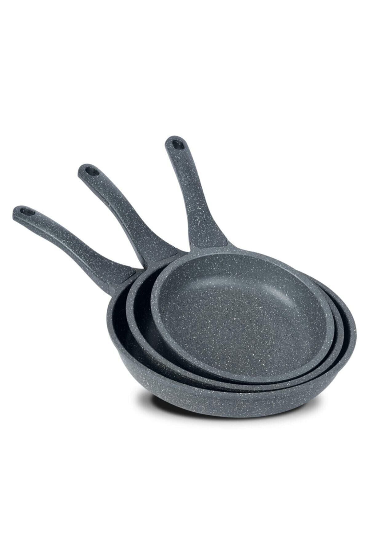 3'lü Granit Döküm Tava Seti 20 Cm 24 Cm 28 Cm Gri