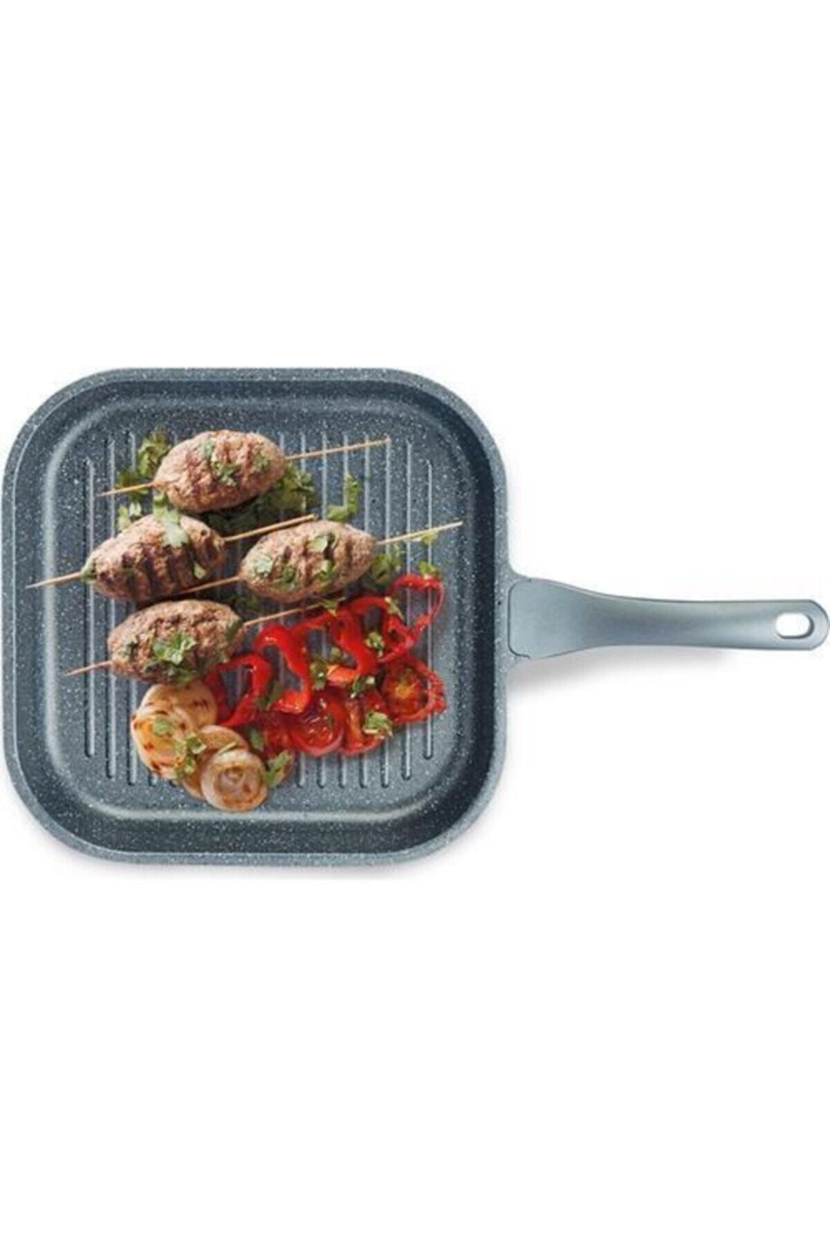 Granit iç ve dış yüzeyi sayesinde yüksek ısı dağılımı sağlar, eşit pişirme deneyimi sunar; Yapışmaz taban özelliği ile yiyeceklerin tavaya yapışmasını önler, temizliği kolaylaştırır; Alüminyum döküm malzemesi, dayanıklılığı artırarak uzun ömürlü kullanım vaat eder; Tek parça halinde gelen bu ızgara tavası, mutfakta ihtiyaç duyulan pratikliği ve şıklığı bir arada sunar;