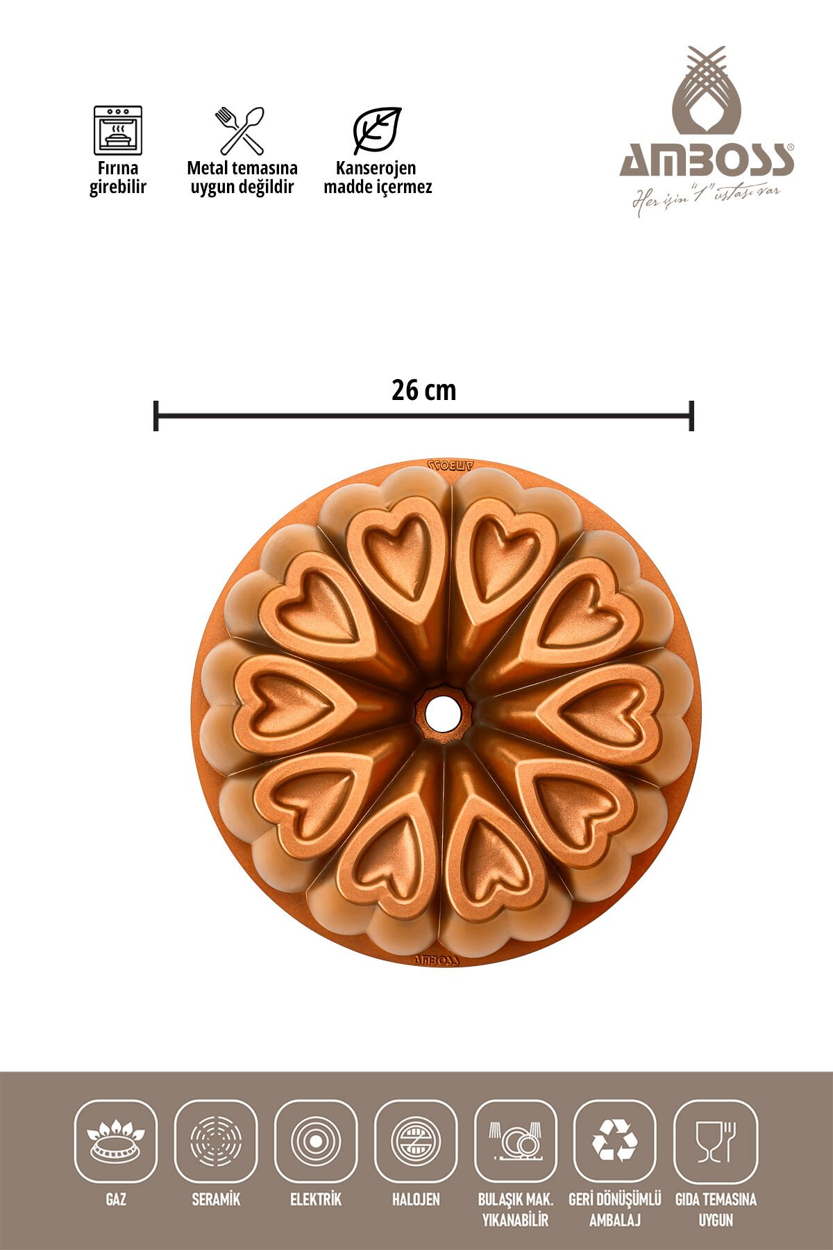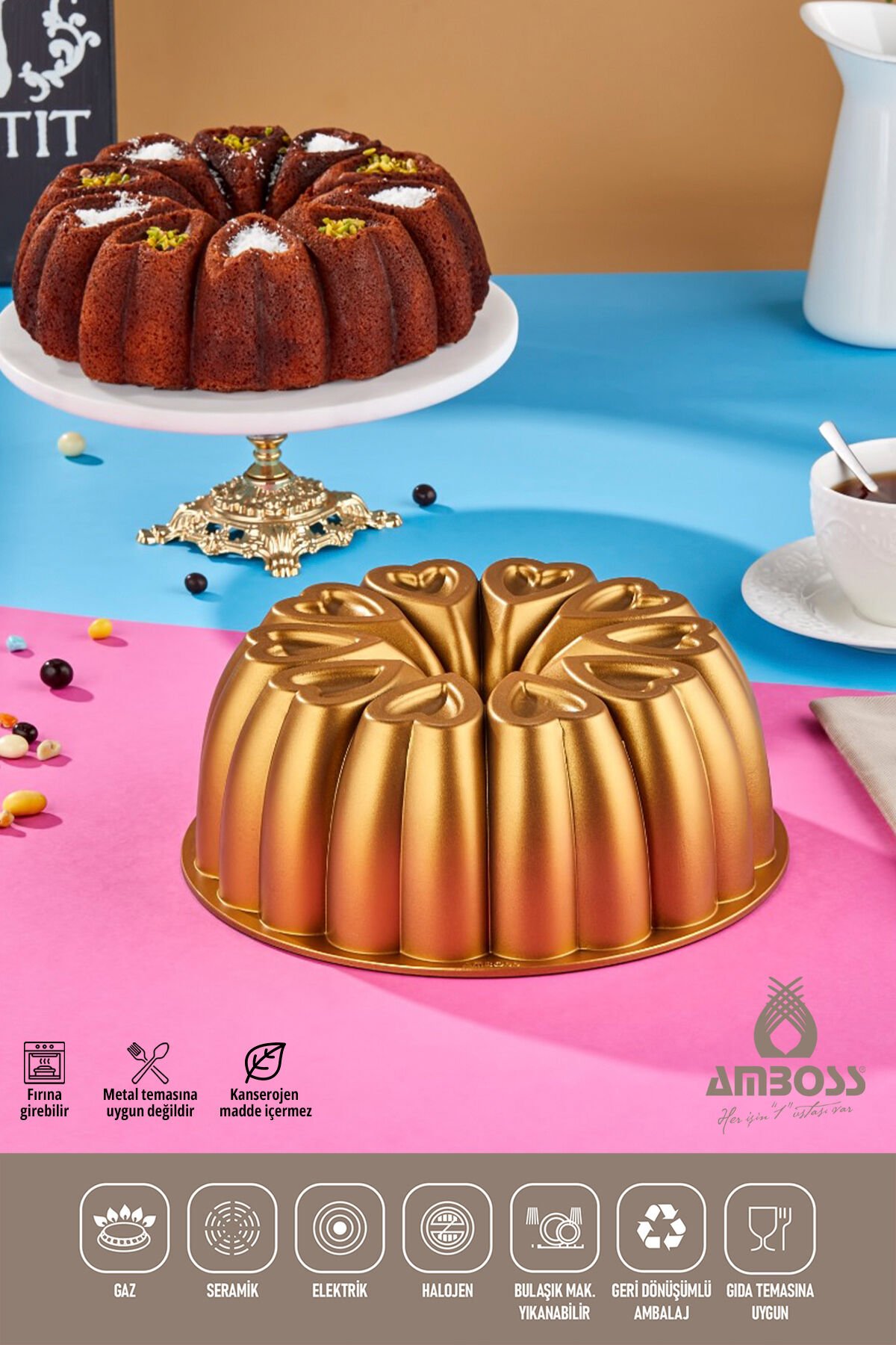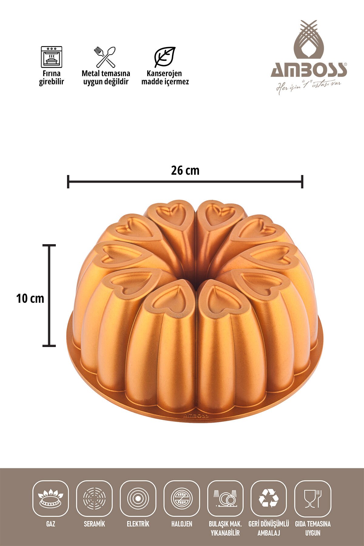 Ürün Bilgisi Amboss Ametist Kek Kalıbı 26 cm Döküm yaklaşık 8/10 kişiliktir Darbeye Dayanıklı Gövde Dış yüzeyi Titanyum Kaplama Sağlık Kodeksine Uyumlu PFOA İçermez 2 yıl garantili Ürün Hakkında Döküm kalıbımız adını Aşk ve sevgi taşı olan Ametist taşından almıştır.; Her ürünümüzde olduğu gibi Anne sevgisini kattık, Sevgililerin, mutlu eşlerin aşkı ile harmanladık Ametist kalıbı ürettik.; Amboss Ametist kalıp ile Çay Saatleriniz, samimi sohbetleriniz, görsel Lezzet şölenine dönüşecek.
