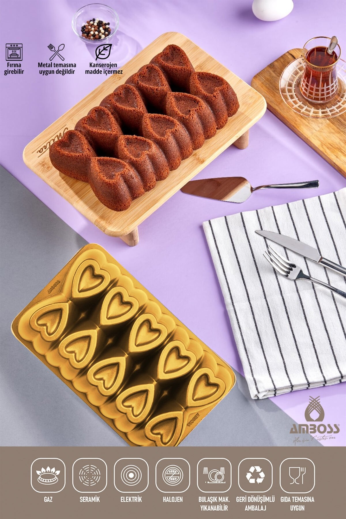 Amboss Ametist Döküm Kek Kalıbı | Döküm |Darbeye Dayanıklı Gövde, Titanyum Kaplama |Sağlık Kodeksine Uyumlu,PFOA İçermez| Ürün Meteryali: Döküm Kalıbımız adını Aşk ve sevgi taşı olan Ametist taşından almıştır.; Her ürünümüzde olduğu gibi Anne sevgisini kattık, Sevgililerin, mutlu eşlerin aşkı ile harmanladık Ametist Kalıbı Ürettik.; Amboss Ametist kalıp ile Çay Saatleriniz ,Samimi sohbetleriniz ,Görsel Lezzet şölenine dönüşecek.; Ürün Özellikleri : Amboss ametist kalıp 26 cm çapında yaklaşık 8/10 kişiliktir, çizilmeye dayanıklı yapısı ile uzun süre kullanıma imkan tanır.; ; Ametist kalıbımızın İçi granit kaplama , dışı özel teknik titanyum kaplamadır, özel yapısı sayesinde içerisinde ısıyı eşit oranda dağıtarak orantılı pişmesini sağlar hamur kalmaz , kusursuz şekiller çıkartırsınız.; ; Önerilerimiz: ; Ürünlerinizi Kullanım klavuzun da belirtiği gibi kullanınız ve muhafaza ediniz.; ; İç kısımlarında bıçak,çelik kaşık vs kullanmayınız böylece ürünümüzü uzun ömürlü kullanırsınız ; Ametist kalıbınızı fırında kullanırken ,Mutfak tezgahına , yere , fırının ızgaralı bölümüne, sert yüzeylere yavaşça koyunuz böylece uzun yıllar ilk günkü gibi kullanmanıza olanak tanır.; ; Sıcak bölümlerine çıplak elle dokunmayınız ısıyı kusursuz şekilde yaydığı için istenmeyen yaralanmalar olabilir, eldiven yada elbezi kullanmaya dikkat ediniz.; ;