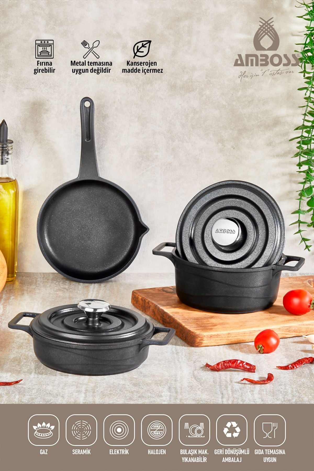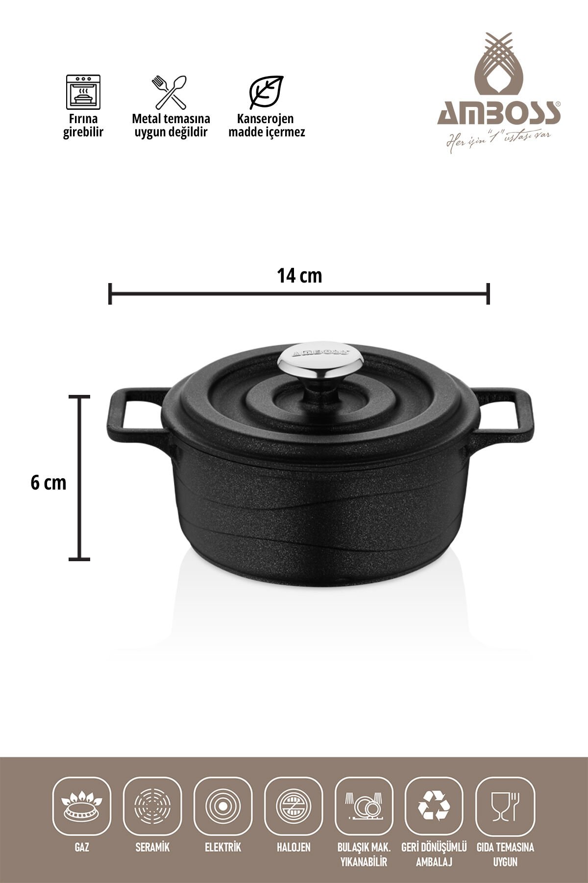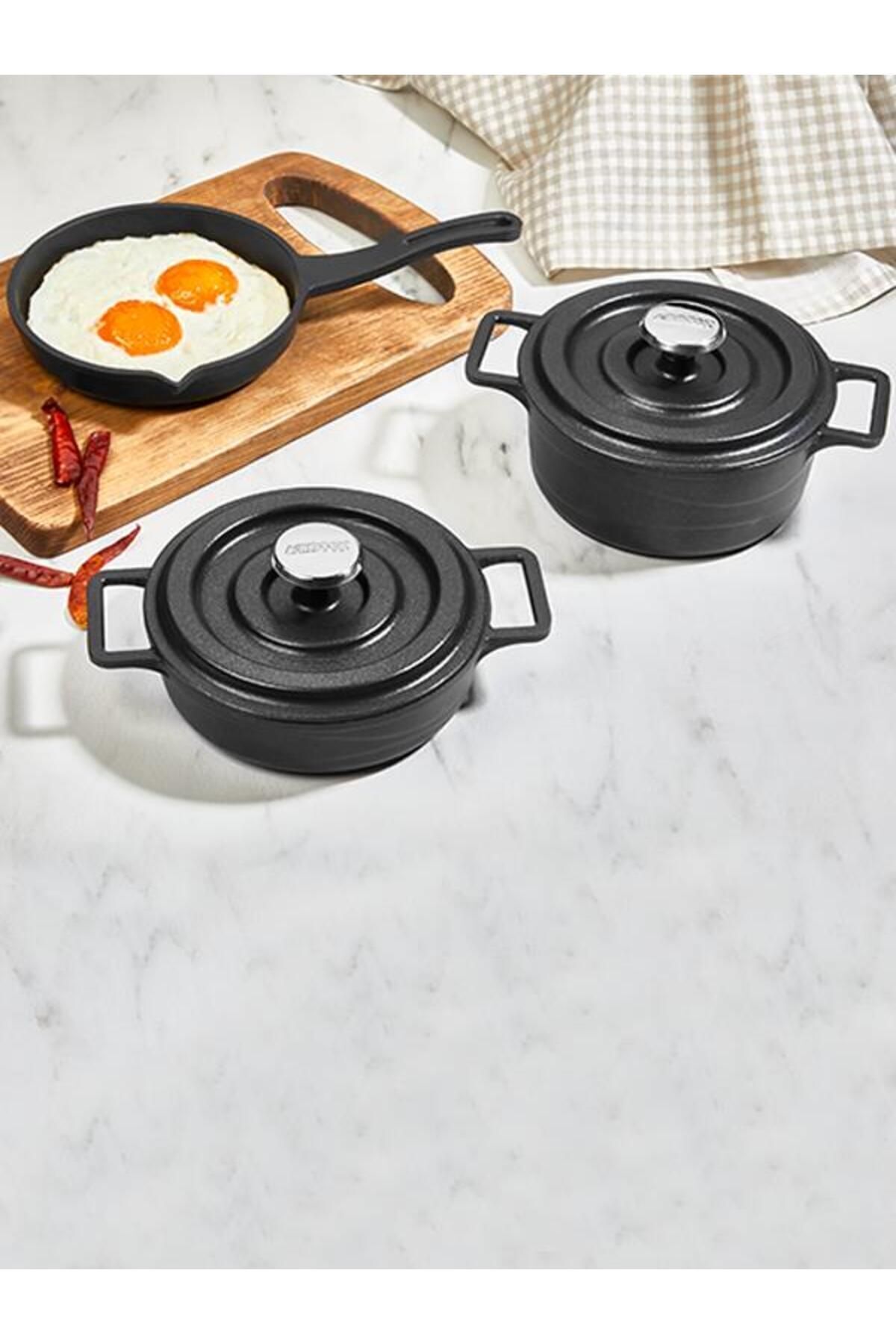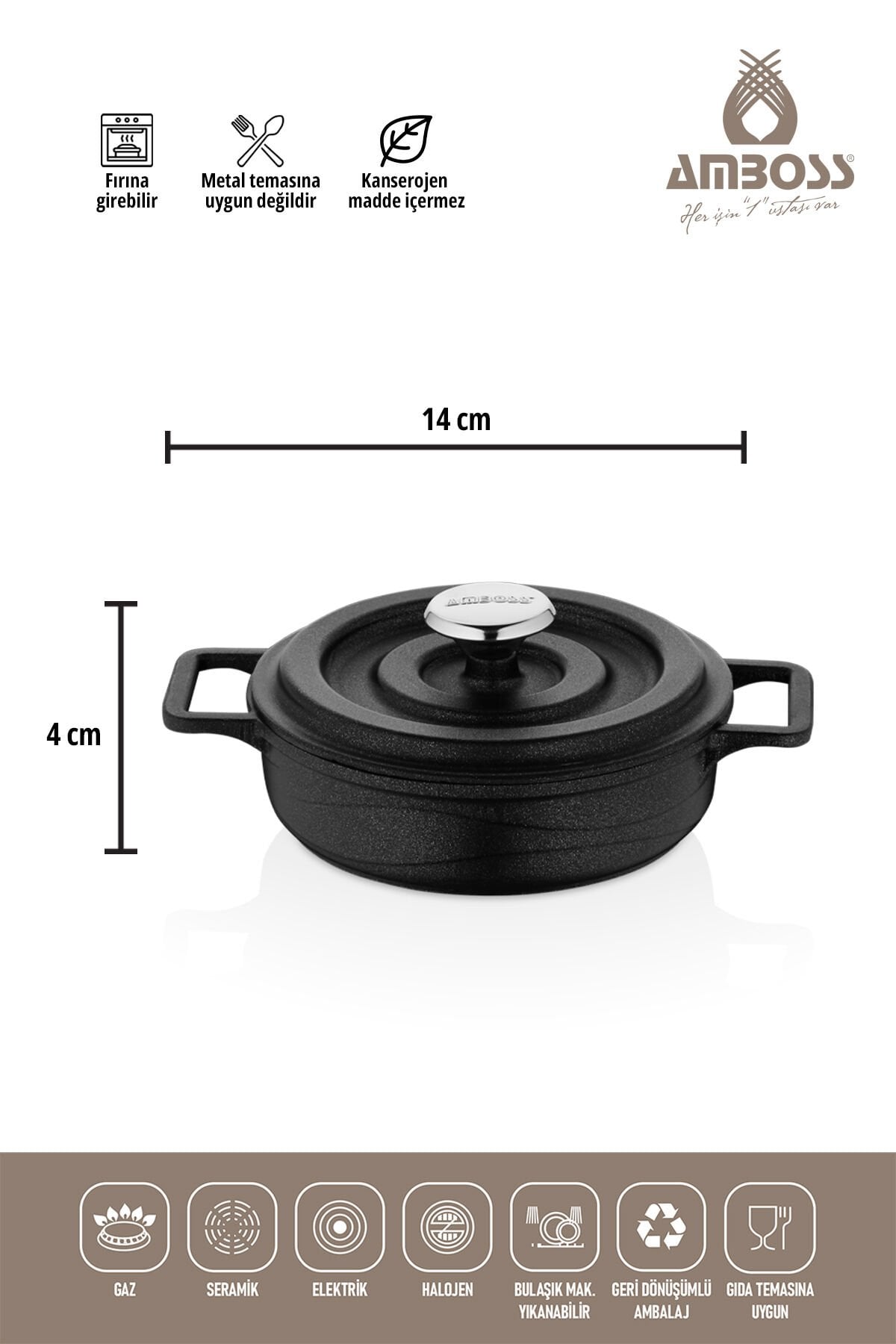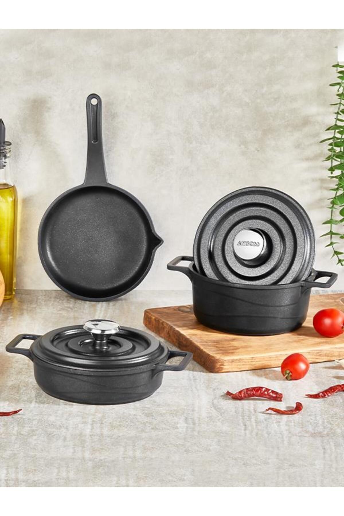 Fırında güvenle kullanabileceğiniz Bellus mini tencere seti, pişirme işlemlerinizi kolay ve pratik bir şekilde gerçekleştirmenizi sağlar; Yüksek kaliteli döküm dış ve iç materyali sayesinde uzun ömürlü kullanım sunar ve ısıyı eşit bir şekilde dağıtarak mükemmel pişirme sonuçları elde etmenize yardımcı olur; Siyah renk seçeneğiyle mutfak dekorasyonunuza şık bir dokunuş eklerken, 5 parça set içeriğiyle çeşitli yemekler için ideal bir çözüm sunar;