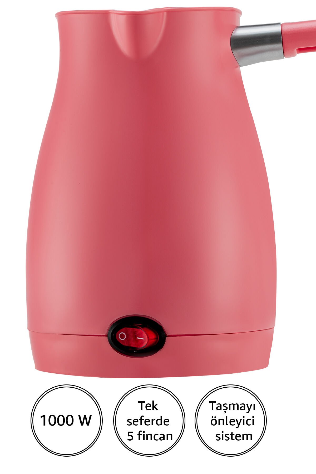 2 yıl garantili güvenle kullanım sunar.; - 4 fincan kapasitesiyle birden fazla kişiye aynı anda kahve keyfi sağlar.; 0.4 Lt.; hacme sahiptir.; - Yerli üretim olup, Türkiye'de üretilmiştir.; - Dayanıklı plastik materyalden yapılmıştır, uzun ömürlüdür.; - Otomatik su alımı özelliği bulunmaz, manuel olarak doldurmanız gerekmektedir.; - SS304 Paslanmaz çelik gizli rezistans.; - Işık göstergeli açma-kapatma anahtarı.; - Çift yönlü dökme özelliğine sahiptir.; - Frekans aralığı 50 60 Hz.; 1000 Watt.; 220 - 240 V.; - Otomatik kapanma fonksiyonuna sahip değildir, kullanılmadığında manuel olarak kapatılması gerekir.; - Klasik tasarımıyla mutfak dekorasyonunuza şıklık katar.; - Taşma emniyeti bulunmadığından dikkatli kullanılması tavsiye edilir.; - Damlama emniyeti mevcut değildir ancak elde yıkama önerilmektedir.; - Canlı renkleriyle mutfağınıza renk katarken, aksesuar olarak da değerlendirilebilir.; - Tamir edilebilir yapısı sayesinde küçük arızalar satıcıdan destek alınarak çözülebilir.