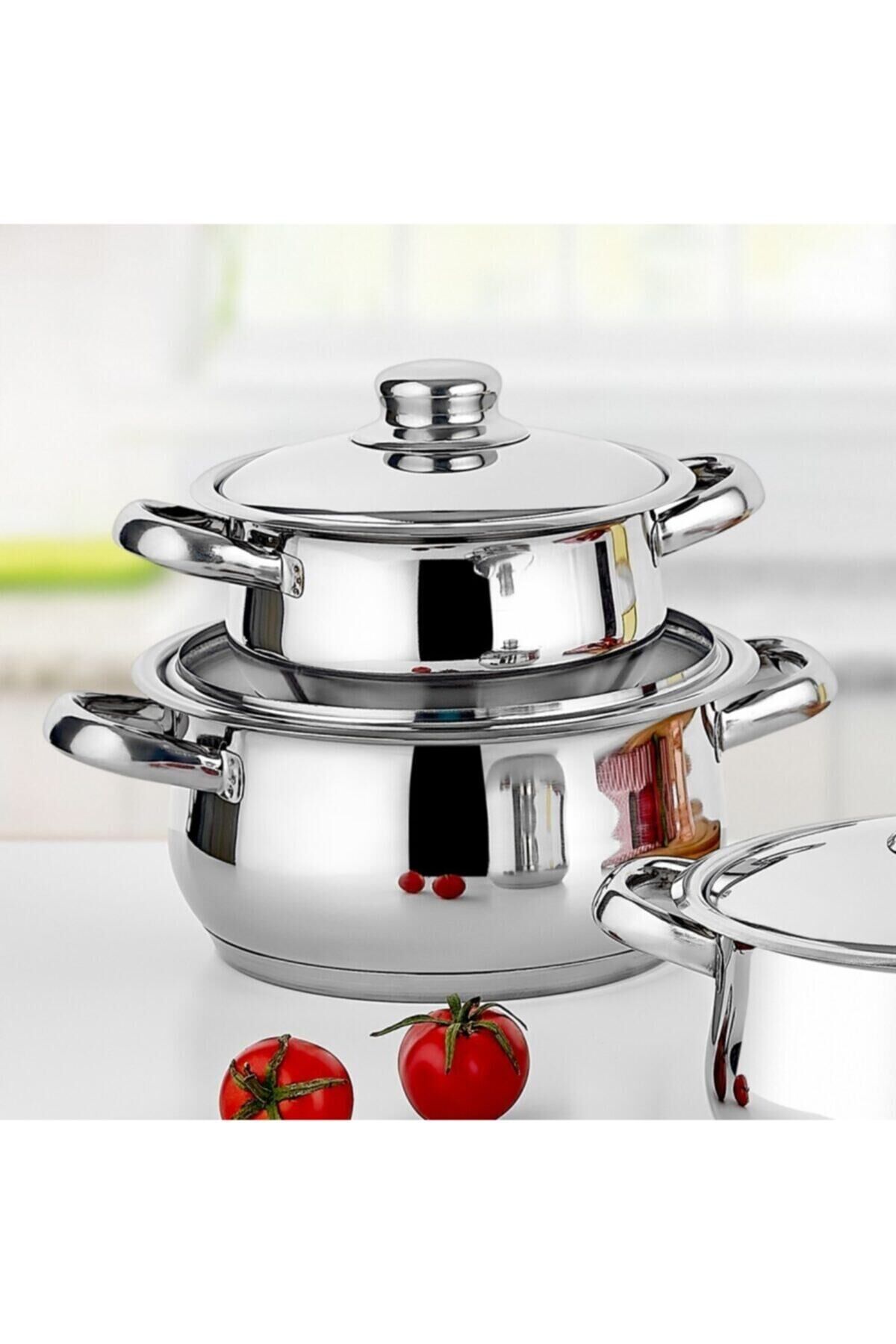 - Dayanıklı çelik malzemeden üretilmiş olup, uzun ömürlü kullanım sunar.; - 6 parçadan oluşan set, mutfakta farklı ihtiyaçlara cevap verir.; - 2,9 litre hacmiyle çeşitli yemeklerinizi kolayca hazırlayabilirsiniz.; - Metalik çelik rengiyle modern ve şık bir görünüm sağlar.; - İndüksiyon ocaklarda da rahatlıkla kullanılabilir, enerji verimliliği sunar.; - Tek ebat tasarımı sayesinde kolayca saklanabilir ve kullanılabilir.; - TR menşeli olup, yerli üretim kalitesini yansıtır.; - Gıda temasında güvenli kullanım için özel bakım talimatlarına uyulması önerilir.