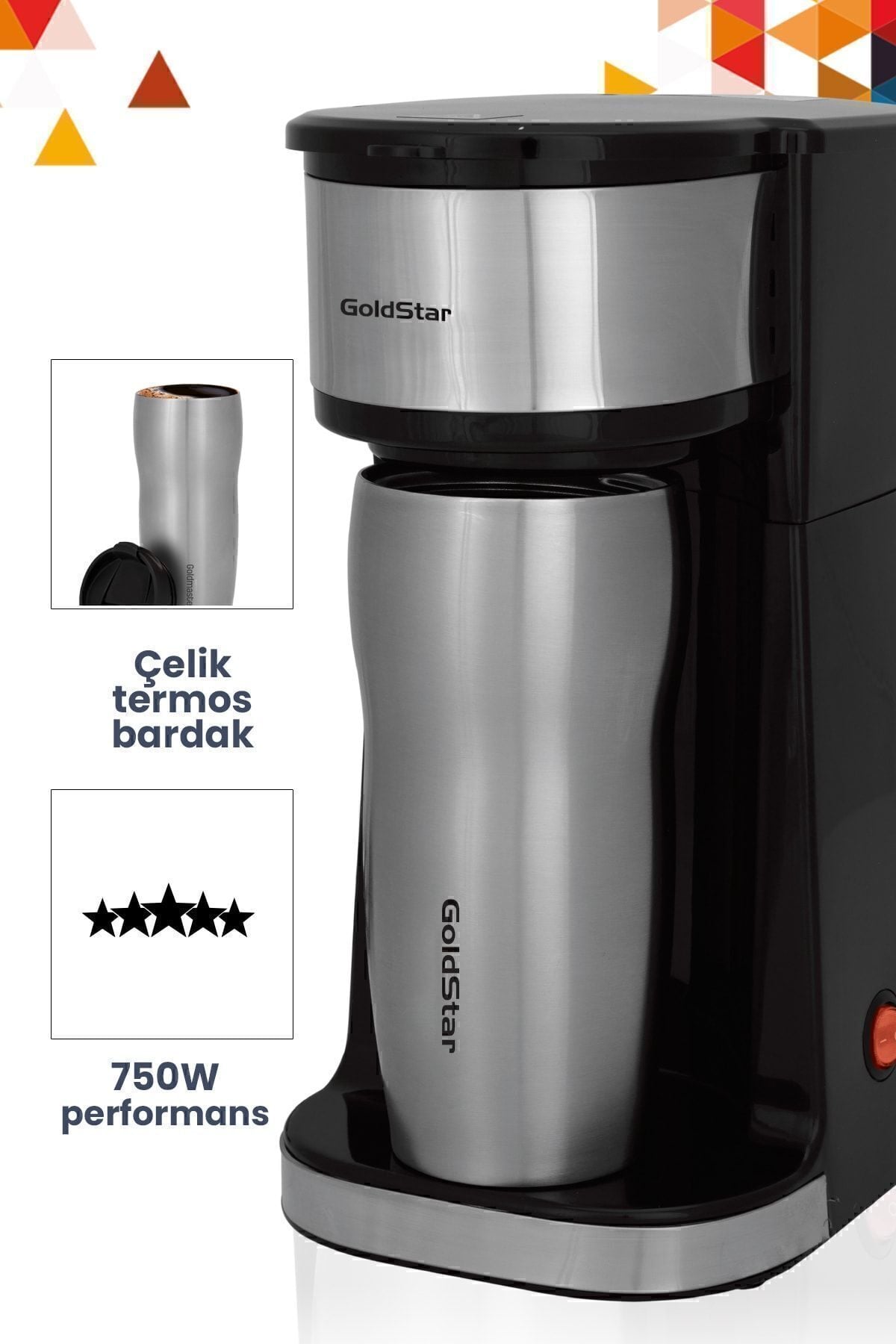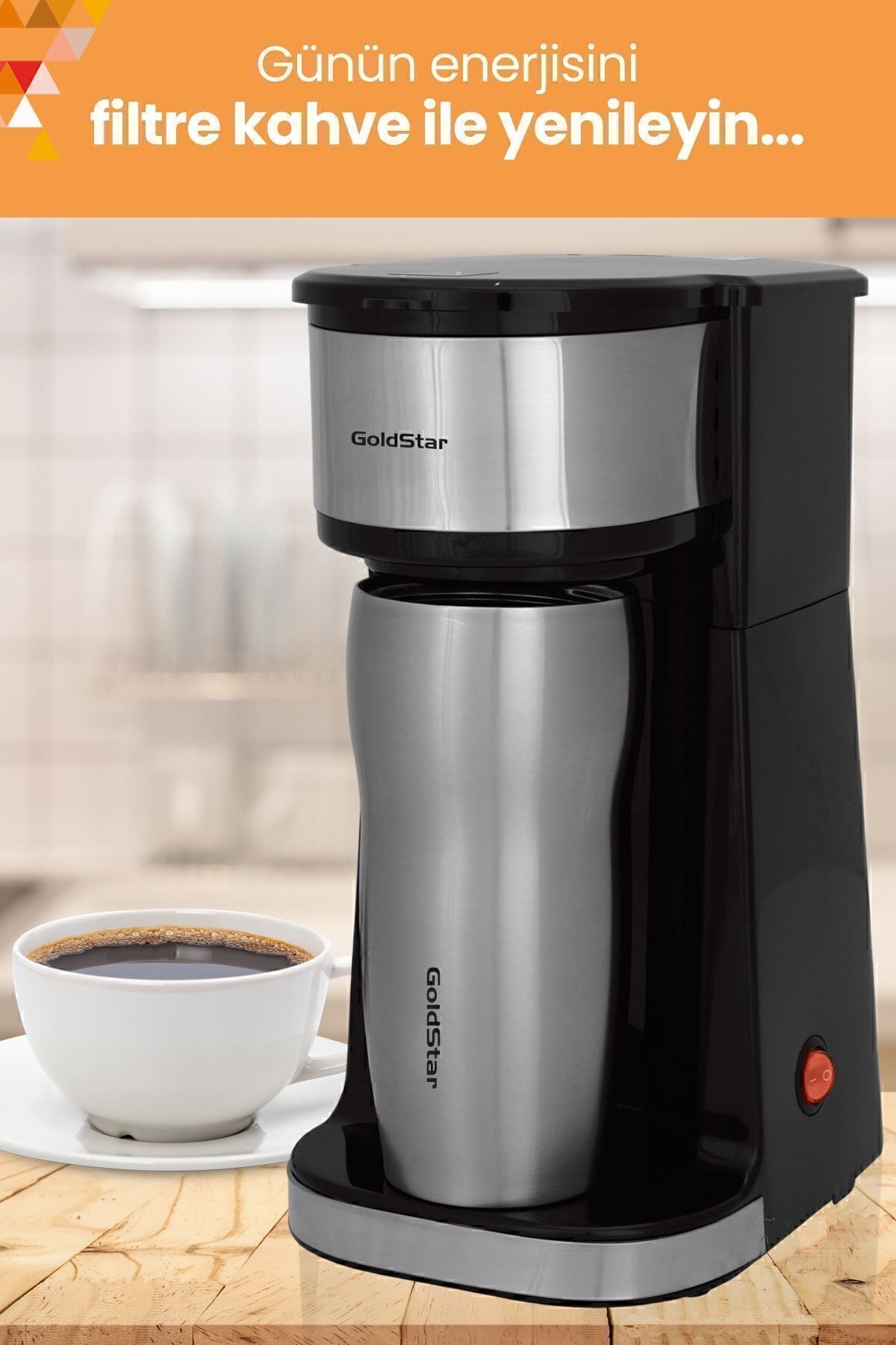 750W Performans ile hızlı ve lezzetli filtre kahve makinesi sunar.;450mL kapasiteli termos bardağı ile taze kahveniz hep yanınızda.;Susuz çalışma ve aşırı ısınmaya karşı iki adımlı koruma ile güvenle kullanım rahatlığı.;Take&Away termos bardağı.;Güvenli başlatma butonu.;Çıkarılabilir ve kolayca temizlenebilir filtre ve filtre yuvası;4 dakikada hızlı ve taze kahve;Demleme sonrası otomatik kapanma fonksiyonu.;304 kalite paslanmaz çelik ön yüzey.;Işık göstergeli açma-kapama düğmesi.