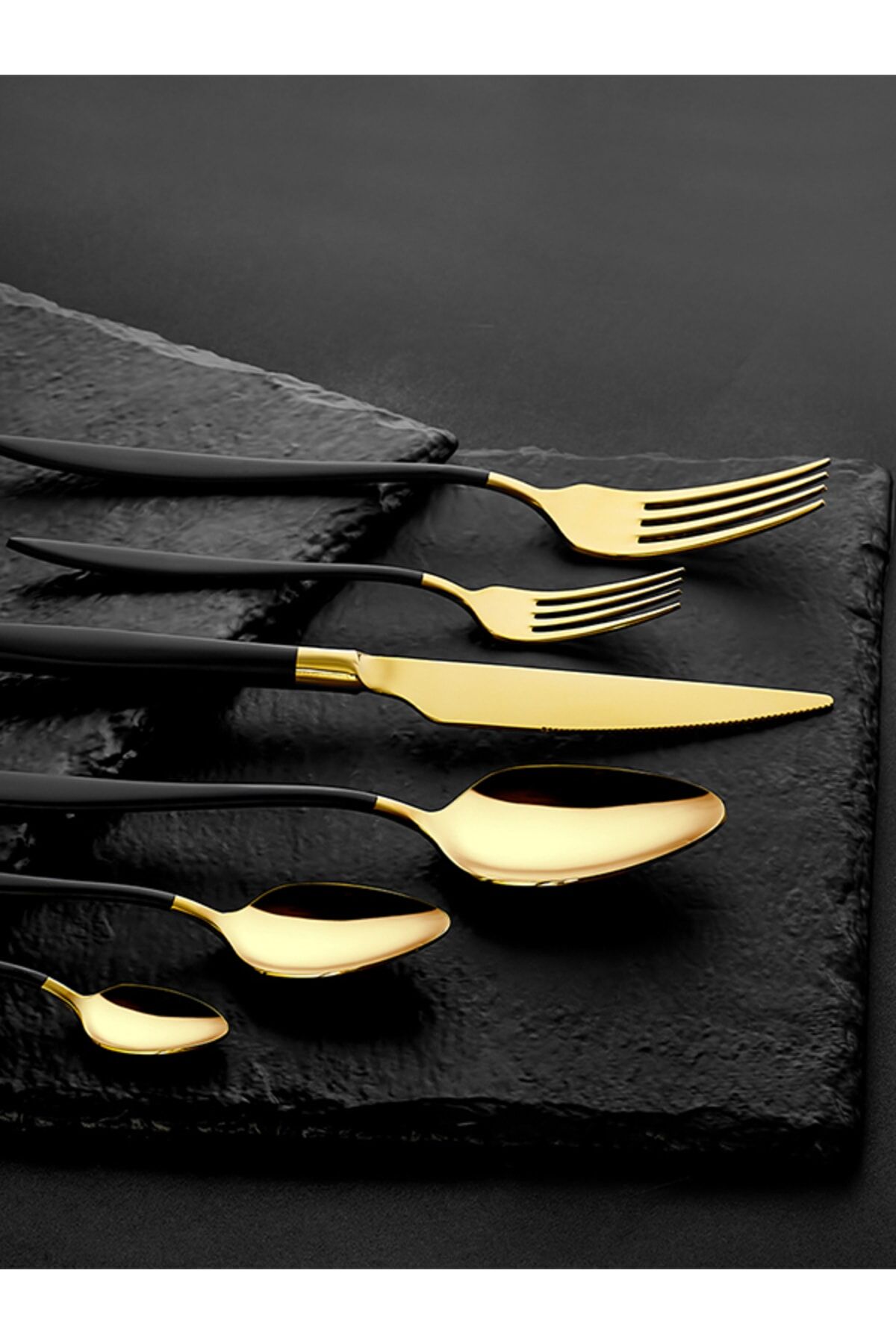 Sofranızda Amboss Cosmos Gold Black 72 Parça Çatal Kaşık Bıçak Takımı’nın şıklığına ve enfes tasarımına yer açın ! Tasarımı ve şık kutusuyla hem özel sofralarda hem de günlük kullanımda tercih edilebileceğiniz bu set, parlaklığını koruyan özel paslanmaz çelik malzemesi sayesinde uzun ömürlü bir kullanım sağlar. Paslanmaz çelik malzemeden oluşmaktadır. Bu sayede keskinliğini uzun süre korur. Kullanım önerilerine uyulduğu sürece parlaklıklarını ve şık görünümlerini ilk gün ki gibi korur. 72 Parça; ; 12 Yemek Kaşığı ; 12 Yemek Çatalı ; 12 Tatlı Kaşığı ; 12 Tatlı Çatalı ; 12 Çay Kaşığı ;