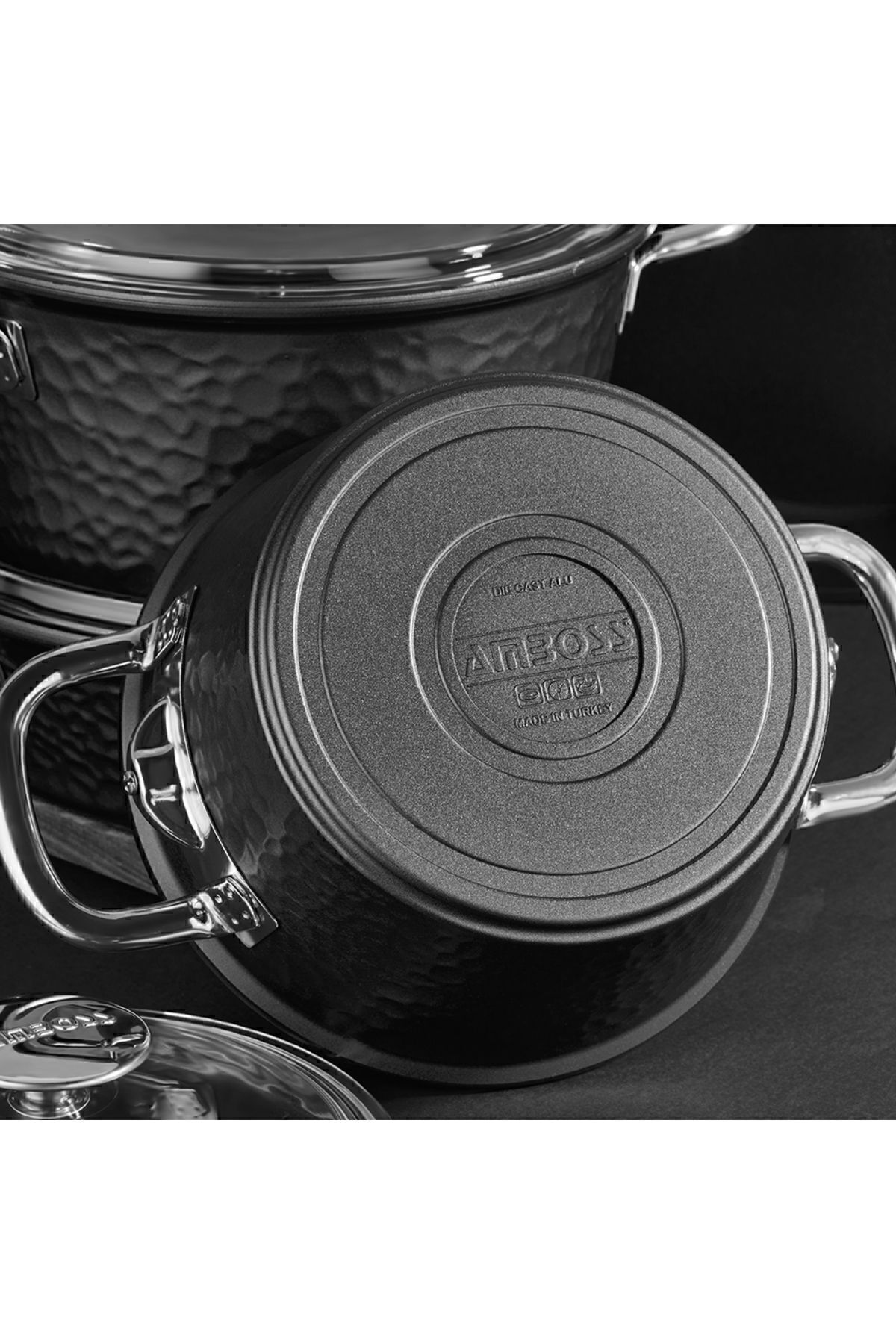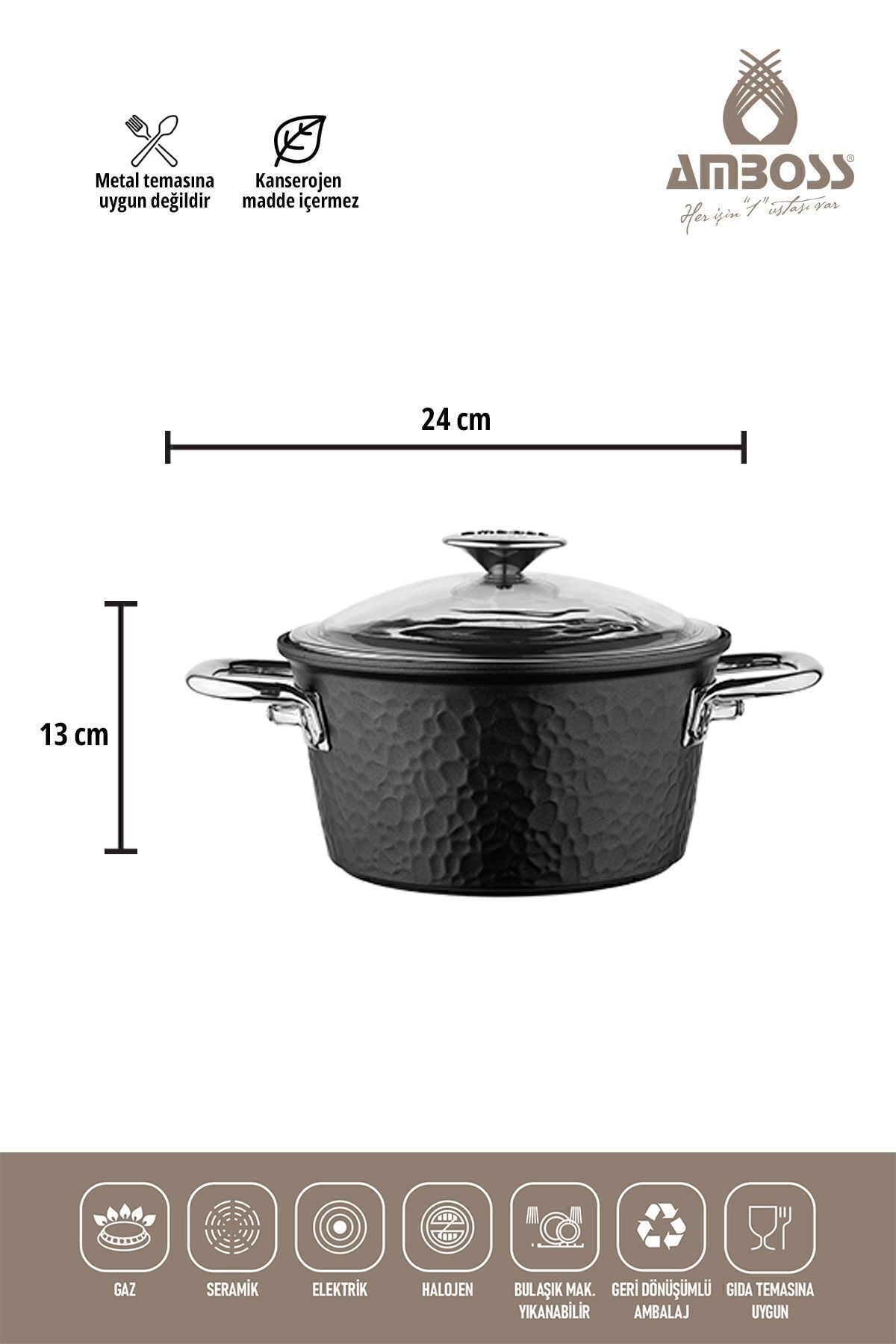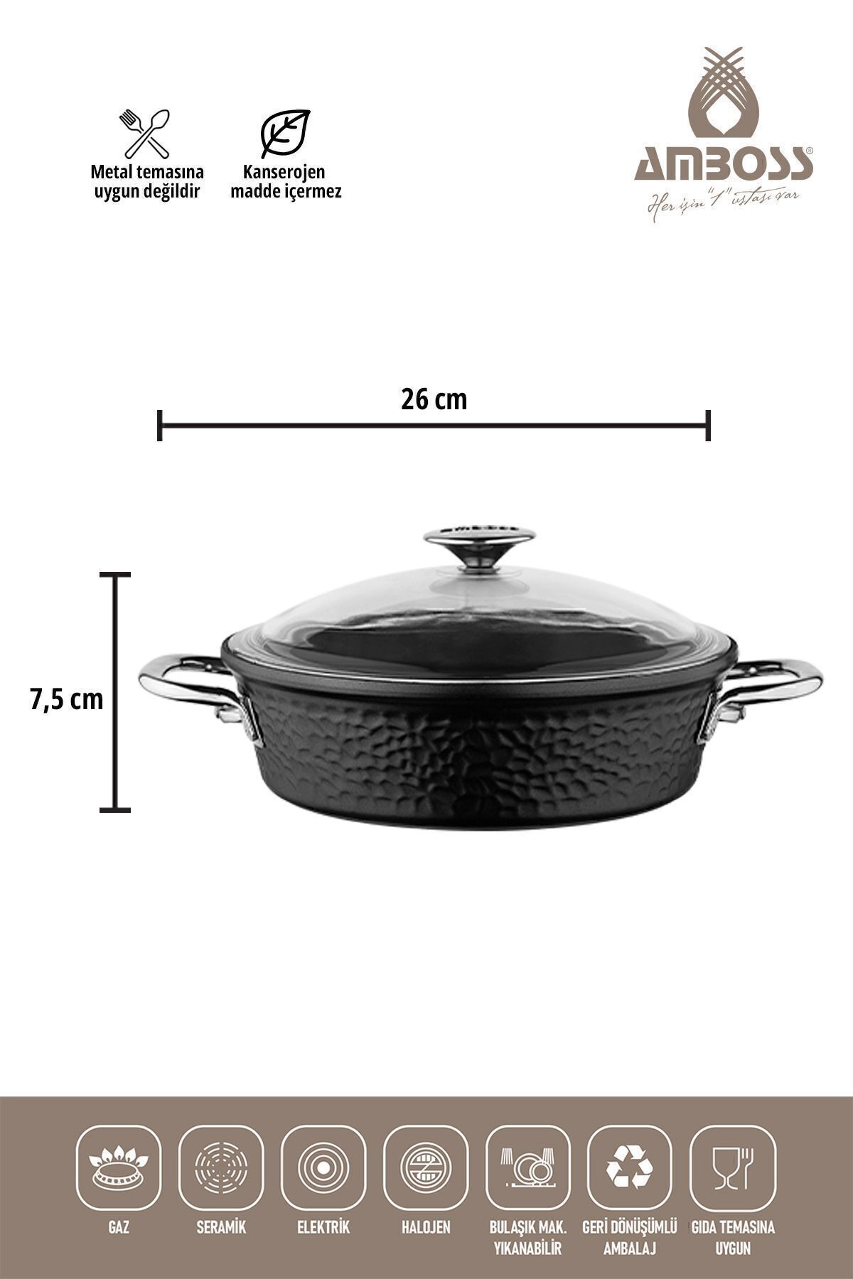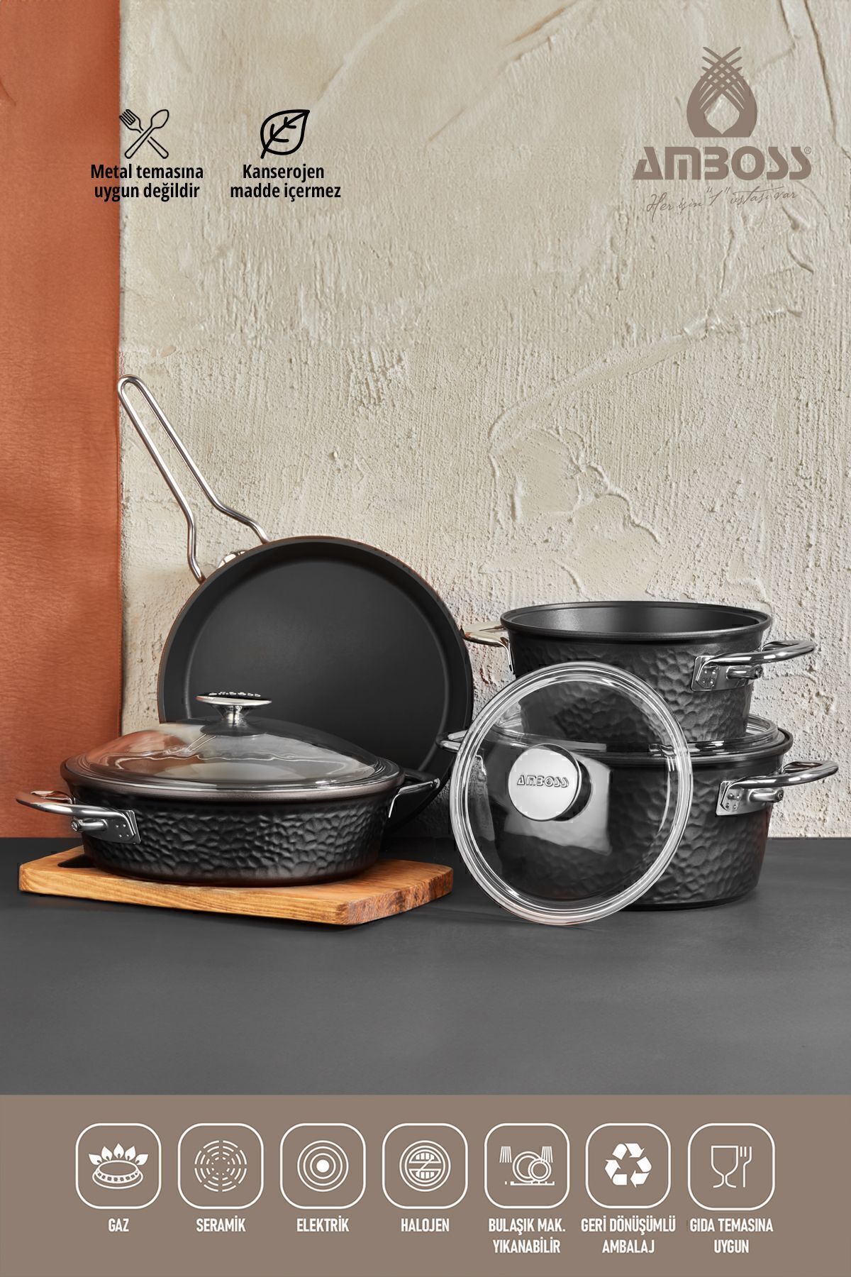 Amboss Cruz Döküm Kapaklı Tencere Seti – 7 Parça – Siyah Fırına girilebilir özelliği; Titanyum Kaplama ; Cam Kapaklı; 2 Yıl Garantili; Çizilmeye Dayanıklı; İndüksiyon ocaklar dışında tüm ocak tiplerine uygun; Bulaşık makinesinde yıkanabilir.; Ürün Ölçüleri: 20 Derin Tencere 24 Derin Tencere 26 Basık Tencere 26 Tava Metaryal: Döküm / Dışı Titanyum Kaplama Özellikler: Dünyaca bilinen sertifikalarına sahip olup insan sağlığına zararlı (bakteri ve kansorejen ) herhangi bir madde içermemektedir.; Döküm ürünlerinde ısının yüzeye eşit ve hızlı dağılımından dolayı, düşük ısılarda ve kısa sürede lezzetli yemek pişirme imkanı sağlar.; Ürünlerimizin özel titanyum kaplamasından ötürü doğru kullanılması durumunda çizilmez ve paslanmaz.; Güveç, Et, Tavuk pişirmek için uygundur.; Fırında güvenle kullanılabilir.; Çabuk ısınır ve ısıyı eşit oranda dağıtır.; Lezzetini kaybetmeden pişirmenizi sağlar.
