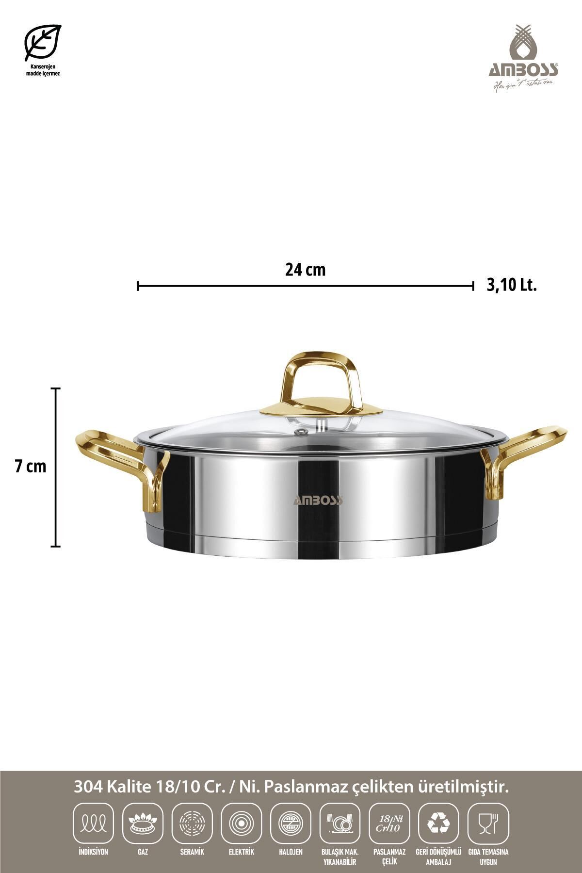 Diamond Gold 18 Parça Çeyiz Seti Mutfakların Yeni Parlayan Yıldızı Şıklık ve İşlevselliği Bir Araya Getiren Tam Bir Set Diamond Gold 18 Parça Çeyiz Seti mutfaklarınızda hem şıklık hem de pratiklik arayanlar için ideal bir seçenek.; Paslanmaz çelikten üretilen bu set, dayanıklılığı, şık tasarımı ve geniş ürün yelpazesi ile öne çıkıyor.; Neden Diamond Gold 18 Parça Çeyiz Seti Deseninin Şıklığı: Tencerelerin üzerindeki mutfağınıza modern ve estetik bir görünüm katıyor.; ; Paslanmaz Çelik Kalitesi: Uzun ömürlü kullanım sağlayan paslanmaz çelik, hijyenik ve dayanıklıdır.; ; Geniş Ürün Yelpazesi: Farklı boyutlardaki tencereler, düdüklü tencere, çaydanlık ve cezve seti ile tüm mutfak ihtiyaçlarınızı karşılıyor.; ; Cam Kapaklı ve Bakalit Saplı: Cam kapaklar sayesinde pişirme sürecinizi kontrol edebilir, bakalit saplar ise güvenli kullanım sağlar.; ; Matik Düdüklü Tencere: Pratik ve güvenli bir şekilde yemeklerinizi pişirmenizi sağlar.; ; Setin İçeriği ve Özellikleri Tencereler: 16 cm, 20 cm ve 24 cm derin tencere, 24 cm basık tencere ; Düdüklü Tencere: 22 cm, 6 litre kapasiteli ; Çaydanlık Seti: Orta boy, 1 lt üst demlik, 2,25 lt alt çaydanlık ve 3 farklı boyutta cezve ; Cam Kapaklar: Isıya dayanıklı, şık tasarımlı cam kapaklar ; Bakalit Saplar: Isınmayan ve kaydırmaz özelliği sayesinde güvenli kullanım sağlar ; Diamond Gold 18 Parça Çeyiz Seti Avantajları Mutfakta Konfor: Tüm ihtiyaçlarınızı tek bir setle karşılayarak mutfakta zaman kazandırır.; ; Dayanıklılık: Paslanmaz çelik sayesinde uzun yıllar boyunca kullanabilirsiniz.; ; Pratiklik: Cam kapaklar sayesinde pişirme ve süzme işlemlerini kolaylaştırır.; ; Hijyenik: Paslanmaz çelik yapısı sayesinde kolay temizlenir ve bakteri barındırmaz.; ; Enerji Tasarrufu: Kapsül taban teknolojisi sayesinde daha az enerji harcar.