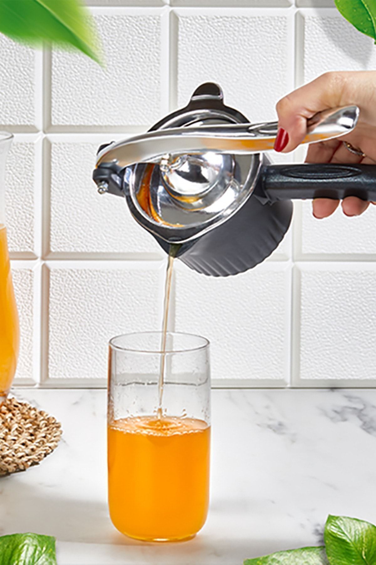 Amboss Frech Döküm, Paslanmaz Çelik, Profesyonel Narenciye Meyve Sıkacağı Paslanmaz Çelik; Döküm; Rahat, pratik kullanım meyve sıkacağı; Meyveyi dağıtmadan sıkma işlemi sağlar; Bulaşık makinesinde yıkanabilir; Geri dönüşümlü kutu ile gönderilmektedir; Gıda temasına uygundur; Nar, portakal, greyfurt, mandalina, limon vb. narenciye meyvelerinin sıkılmasında kullanılır. Özel açılı kremyer dişli sayesinde kolay sıkım sağlar Süzgeçler kısmında bulunan basamaklar sayesinde meyvenin parçalanmasını engeller. Böylece kolay ve tam sıkma işlemi gerçekleşir. Profesyonel kullanım için uygundur. Günlük kullanım için uygundur. Paslanmaz çelikten oluşup sağlık kodeksine uyumludur. Dökümdür.