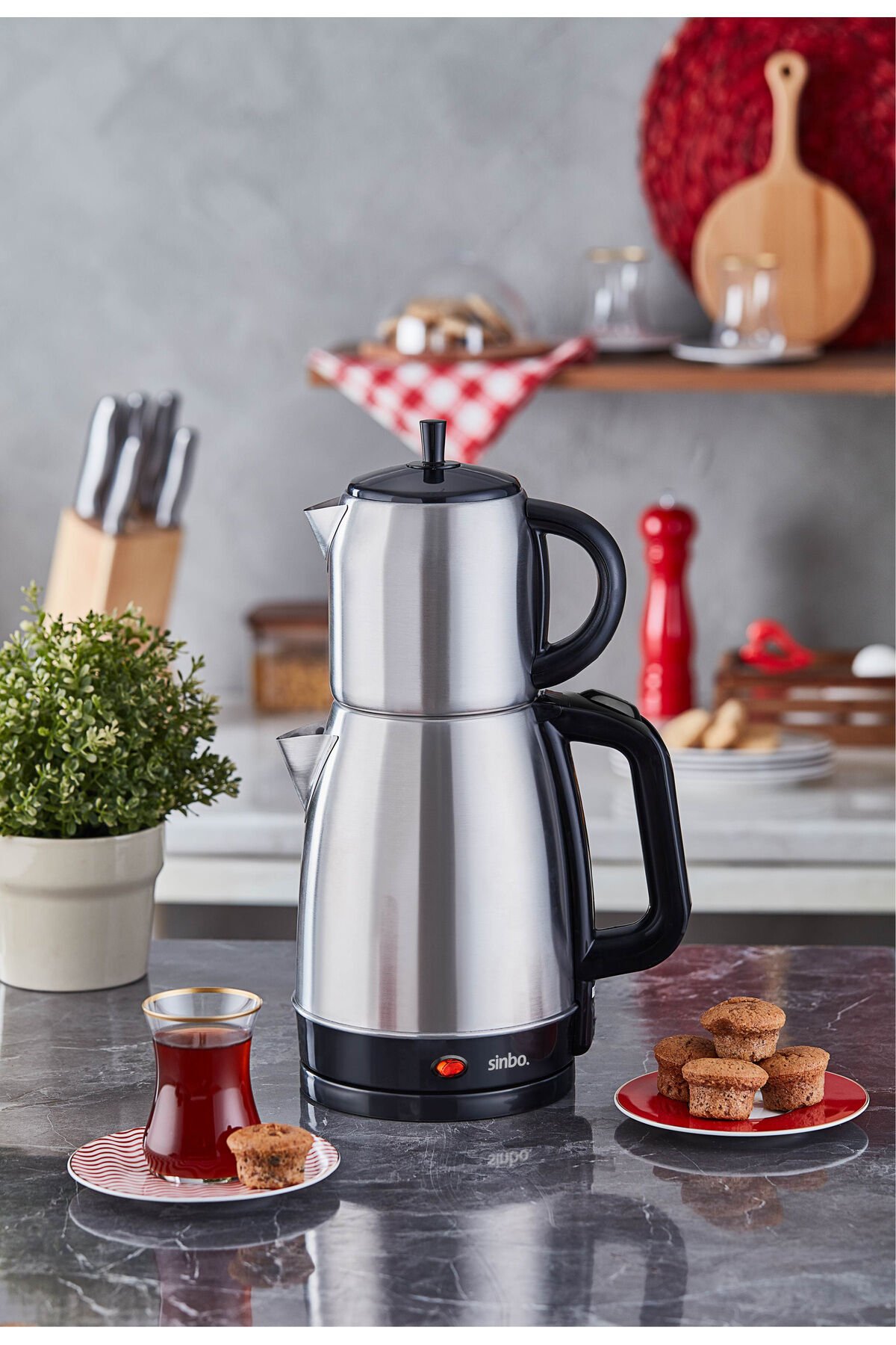 Bu üründen en fazla 2 adet sipariş verilebilir; Belirtilen adet üzerindeki siparişleri Migros iptal etme hakkını saklı tutar; •Dual ısıtma sistemi ile %90 enerji tasarrufu •1; 7 L paslanmaz çelik su ısıtıcısı, 0; 7 L paslanmaz çelik demlik•Özel kapak tasarımı sayesinde su ısıtıcısı olarak kullanabilme imkanı •Otomatik kapanma ve sıcak tutma özelliği •Aşırı ısınma ve susuz çalışmayı önleyen emniyet sistemi•Paslanmaz çelik gizli rezistans •Çıkarılabilir ve yıkanabilir çay süzgeci•360° dönebilme özelliği •Kablosuz kullanım •Kablo saklama yuvası •Gösterge ışıklı açma/kapama anahtarı;