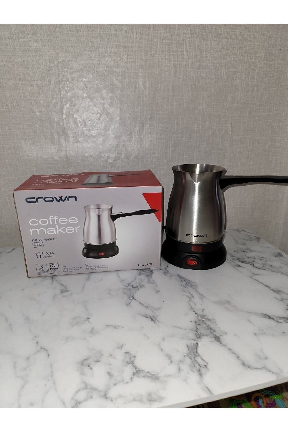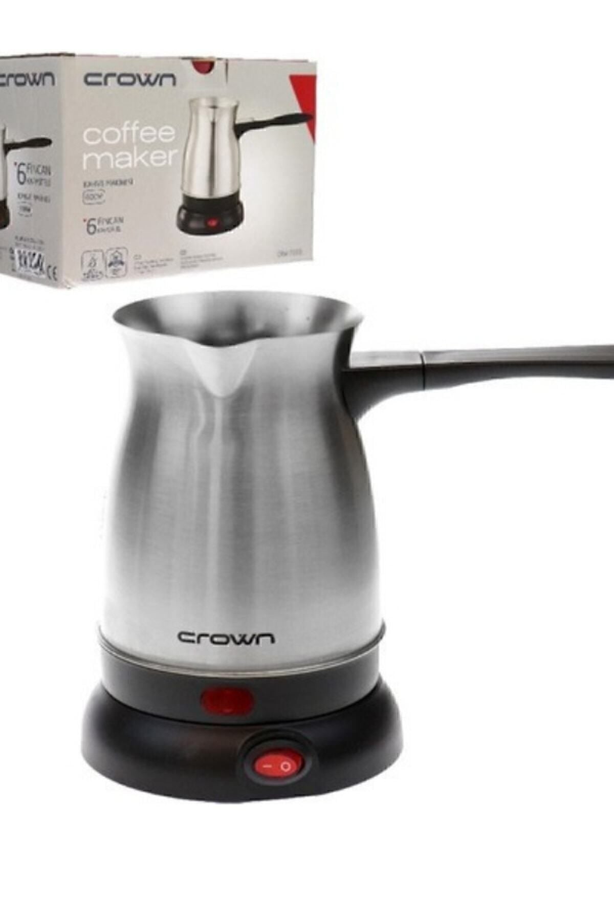 Crown elektrikli cezve kalabalık misafirlere uygun bir modeldir, tek seferde 6 fincan kahve yapma imkanı verir.; Çelik kahve makinesi toz kahve kullanılarak kahve yapılmasını sağlar. Geleneksel kahve cezvelerine benzerdir.; 6 fincan kahve makinesi, 600 W elektrik gücünde çalışır.; Crown elektrikli cezve dış yüzeyi paslanmaz çelikten yapılmıştır.; Elektrikli cezve Crw su taşıma kapasitesi 0-500 litredir.; Crown elektrikli cezve su bitme ve aşırı ısınma emniyeti vardır.; Elektrikli cezve Crown makine 360 C dönüş işlevine sahip enerji iletim tabanı sayesinde kahve hazırlama işlemi son derece hızlı ve kolaydır.; Crown elektrikli cezve hız kontrolü sayesinde kahve hazırlama işlemi hızlanabilir.; Elektrikli cezve su bitme emniyeti sayesinde içindeki suyun bitmesi durumunda çalışır.;