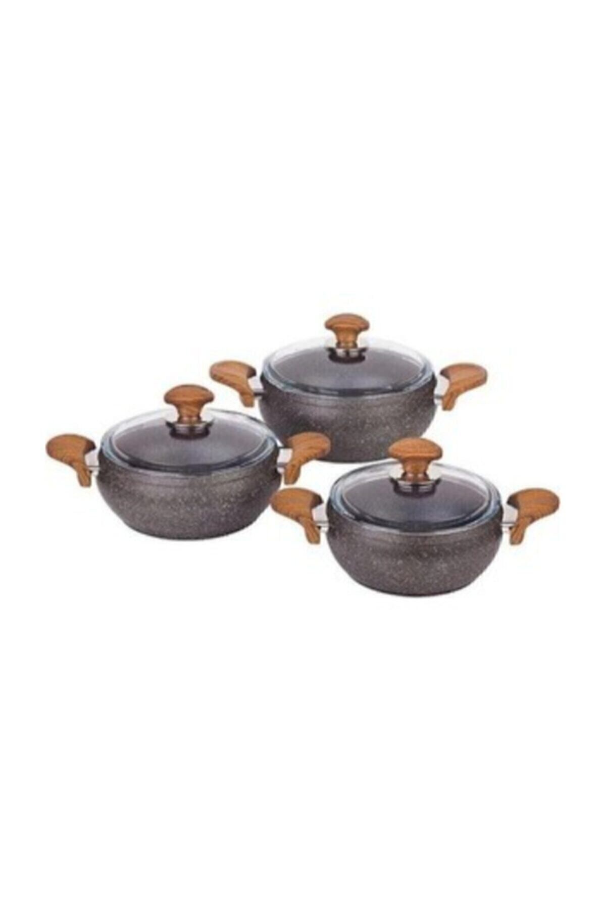 Granit iç ve dış yüzeyi sayesinde uzun ömürlü kullanım sunar ve kolay temizlenebilir;; Isıya dayanıklı yapısı ile yüksek ısıda pişirme imkanı sağlar, böylece yemeklerinizi daha hızlı ve eşit bir şekilde pişirebilirsiniz;; Gri ahşap sap tasarımı, hem şık bir görünüm kazandırır hem de tutuşu kolaylaştırarak mutfakta rahatlık sağlar;; Üçlü set halinde sunulan bu tencere seti, farklı boyutlardaki yemekleriniz için idealdir ve mutfakta ihtiyacınız olan çeşitliliği sunar;;