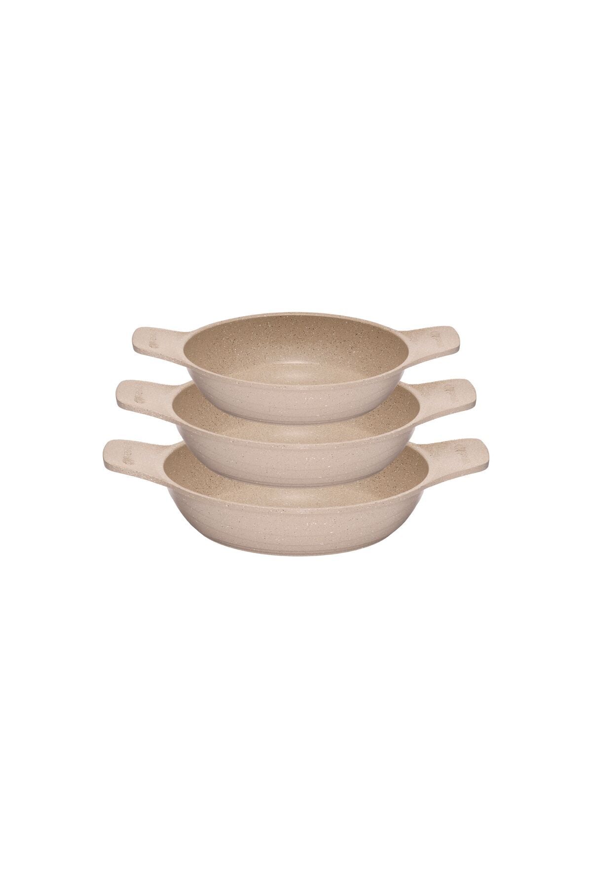 - Fırında güvenle kullanabileceğiniz granit malzemeden üretilmiştir, böylece pişirme sırasında yiyecekleriniz eşit şekilde pişer ve lezzetini korur; - Üç farklı boyutta gelen set, farklı boyutlardaki yemekleriniz için ideal çözümler sunar; - Kapaksız tasarımı sayesinde, pişirme sırasında kolayca kapak değiştirme imkanı sağlar ve temizliği pratikleştirir;