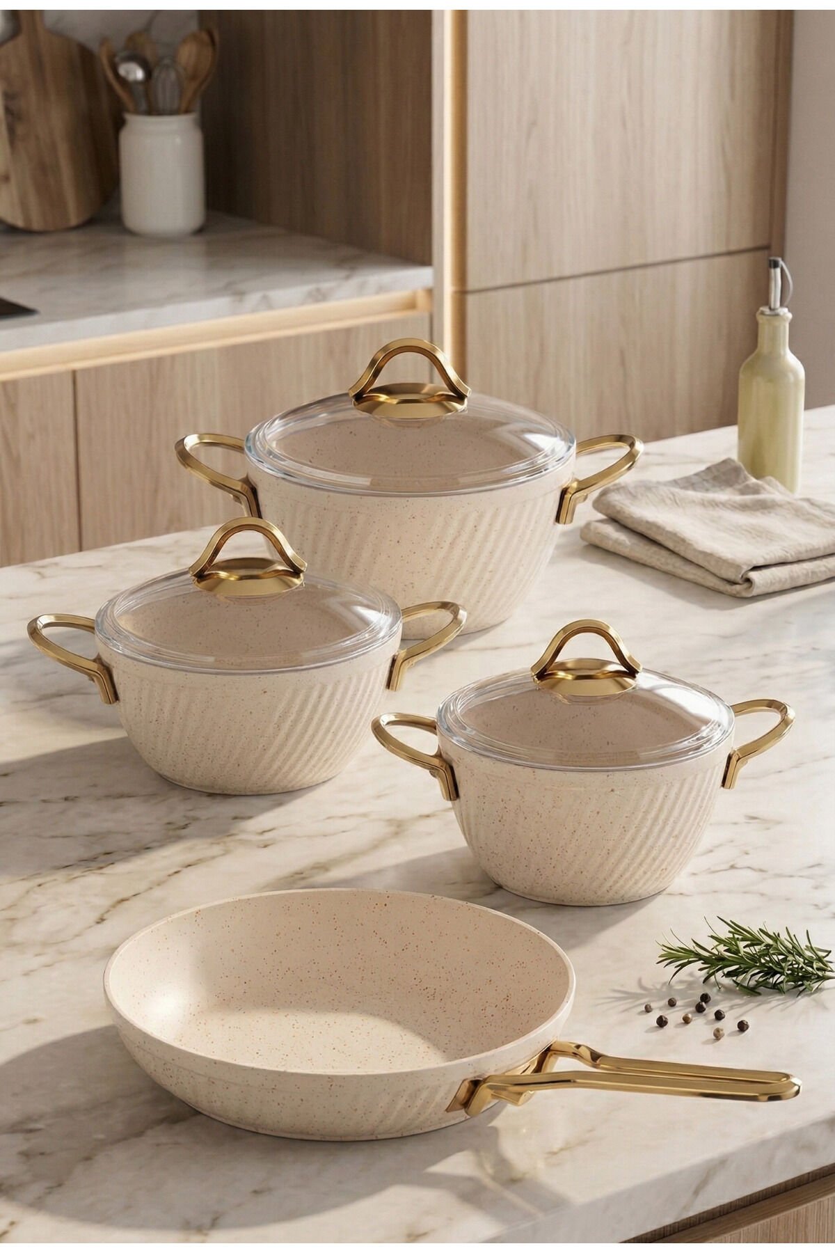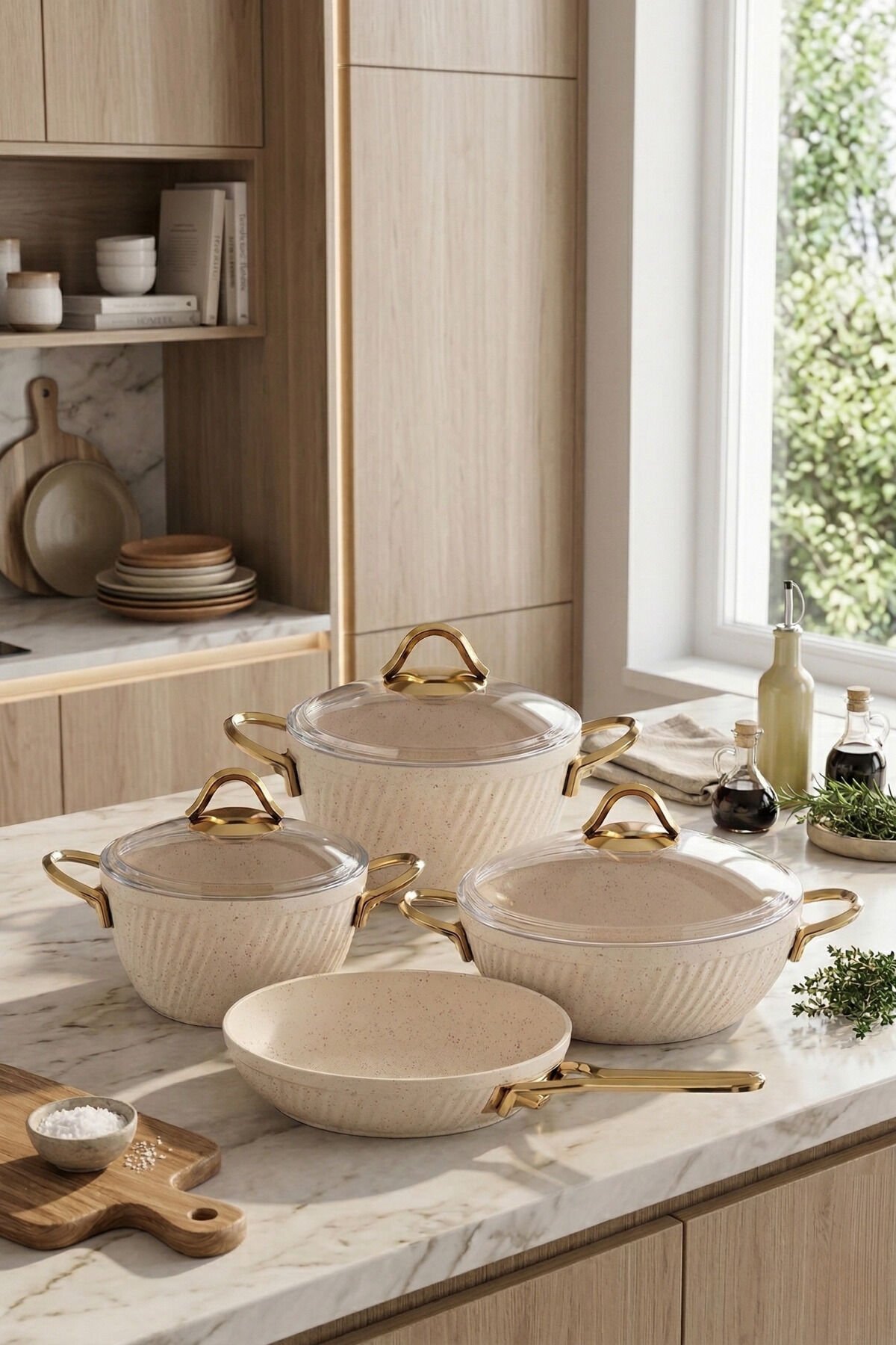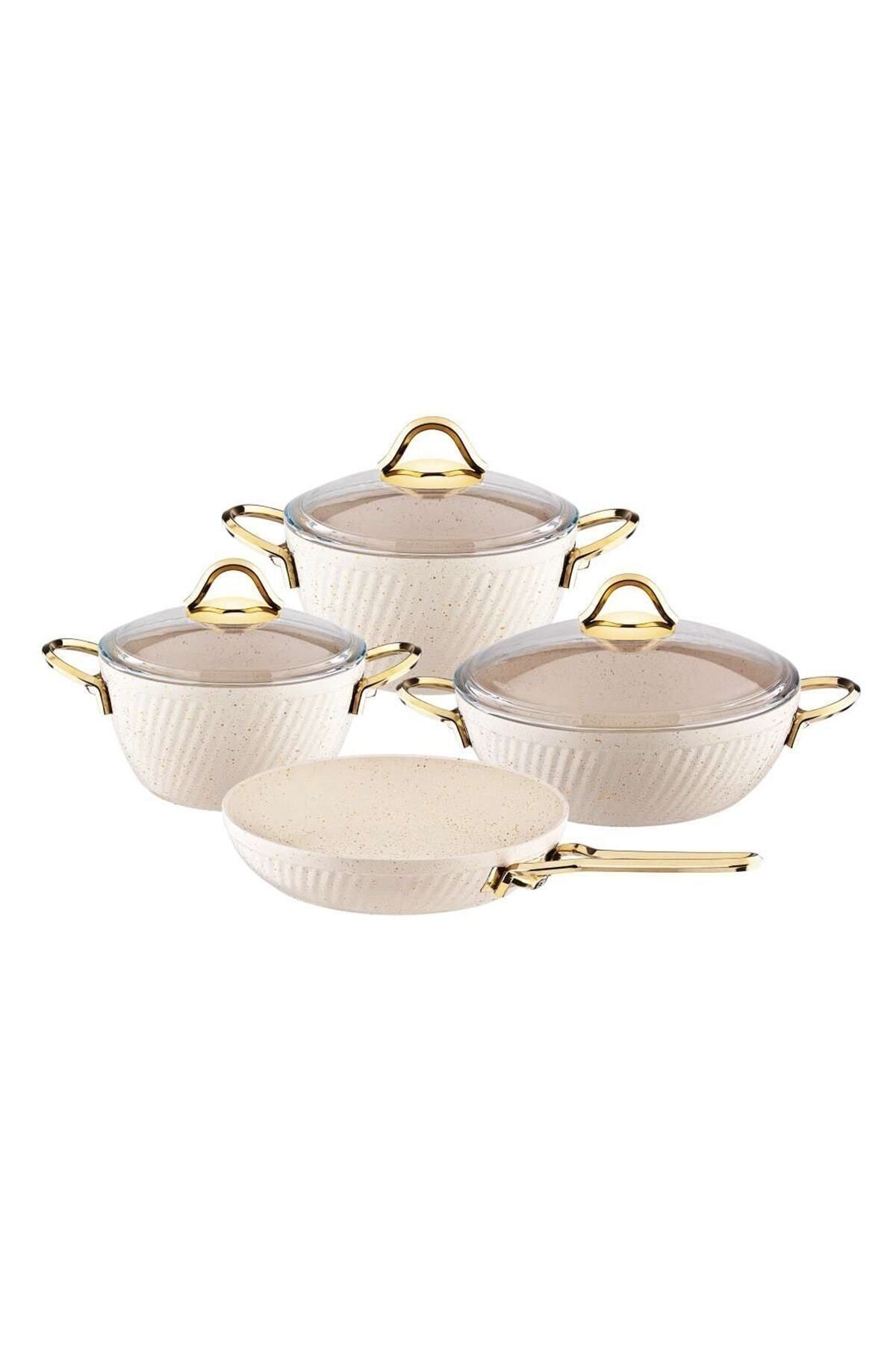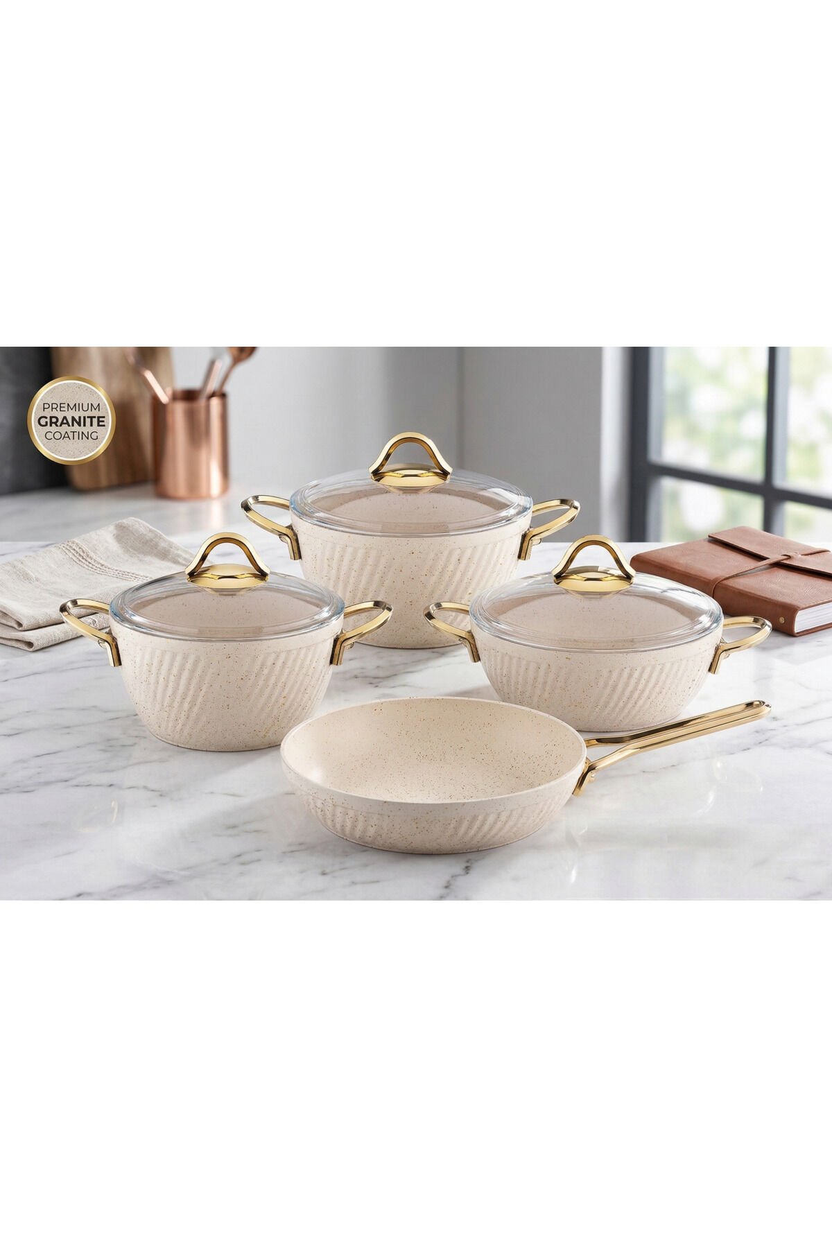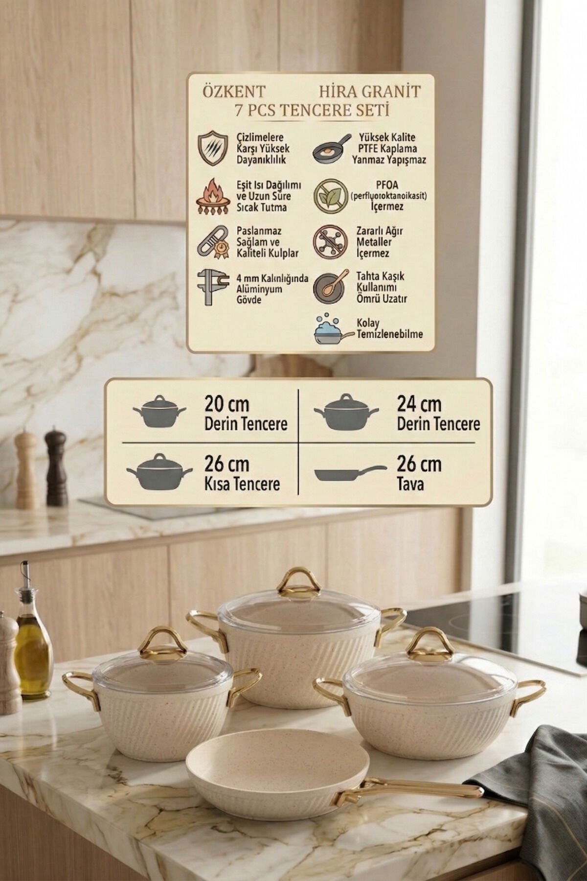 Özkent K-584 Granit 7 Parça Güveç Tencere Seti Krem TOPLAM 7 PARÇA 20 CM DERİN TENCERE / 2 PCS 24 CM DERİN TENCERE / 2 PCS 26 CM KISA TENCERE / 2 PCS 26 CM TAVA / 1 PCS ISIYI EŞİT DAĞITAN DÖKÜM ALÜMİNYUM YANMAZ , YAPIŞMAZ KOLAY TEMİZLENEBİLİR.