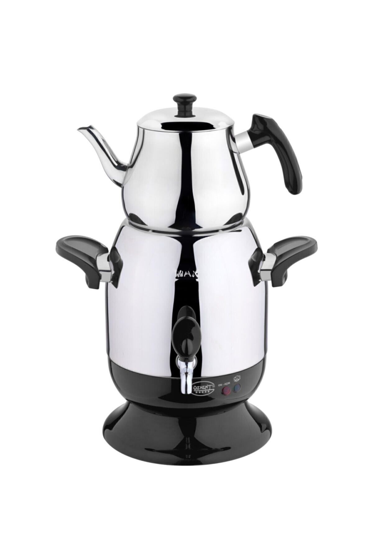 Özkent Marmaris Siyah Semaver ile Bol Bol Çay Keyfi! Özkent Marmaris Semaver kısa sürede çayınızı hazır hale getirir; Paslanmaz çelikten yapılmış geniş su ısıtıcısı ve demliğiyle çay keyifleriniz yarım kalmayacak; Mutfağınızı desenleriyle süsleyecek olan Özkent Semaver su kaynadığında otomatik olarak kapanır; Ürün Özellikleri: · 2200W kaynatma gücü · Kaynatma göstergesi · Otomatik kapanma · 3; 5 L?lik çelik su ısıtıcısı · 1; 7 L?lik çelik demlik ;;