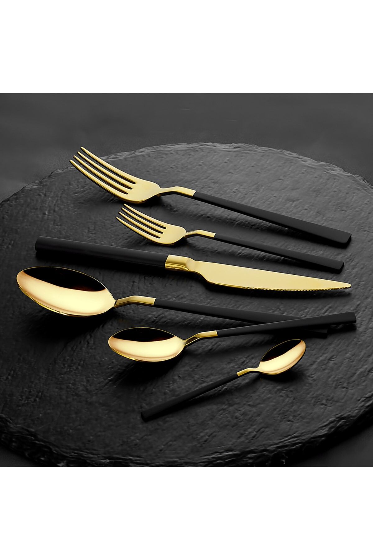 Sofranızda Amboss Lumix Gold Black 72 Parça Çatal Kaşık Bıçak Takımı’nın şıklığına yer açın! Tasarımı ve şık kutusuyla hem özel sofralarda hem de günlük kullanımda tercih edilebileceğiniz bu set, parlaklığını koruyan özel paslanmaz çelik malzemesi sayesinde uzun ömürlü bir kullanım sağlar. Paslanmaz çelik malzemeden oluşmaktadır. Bu sayede keskinliğini uzun süre korur. Kullanım önerilerine uyulduğu sürece parlaklıklarını ve şık görünümlerini ilk gün ki gibi korur. 72 Parça Çatal Kaşık Bıçak Seti ; 12 Yemek Kaşığı ; 12 Yemek Çatalı ; 12 Tatlı Kaşığı ; 12 Tatlı Çatalı ; 12 Çay Kaşığı ; 12 Yemek Bıçağı;