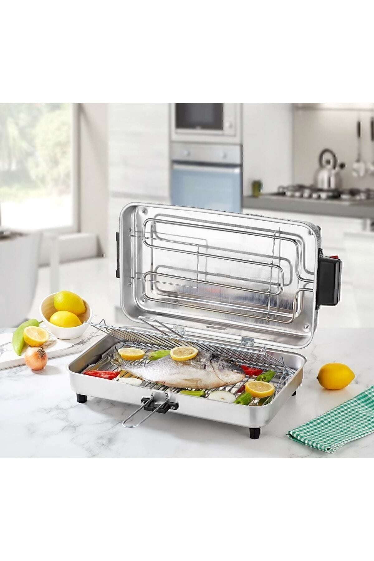 - Tek yönlü plaka kullanımı sayesinde, farklı pişirme ihtiyaçlarınıza uygun olarak ızgaranızı kolayca ayarlayabilirsiniz; - Çıkarılabilir plakalar, temizliği pratik ve hızlı bir şekilde yapmanızı sağlar; böylece ızgaranız her zaman yeni gibi kalır; - Dayanıklı metal materyal yapısı ile uzun ömürlü kullanım sunar ve mutfakta güvenle tercih edebilirsiniz; - 1250 watt gücündeki yüksek performanslı ısıtma sistemi, hızlı ve eşit pişirme deneyimi yaşatır;
