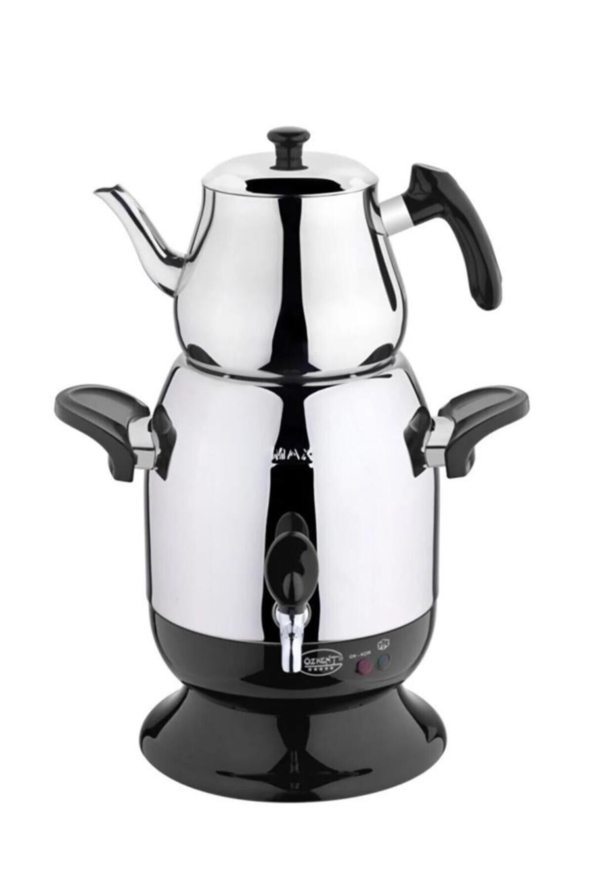 Özkent Marmaris Çelik Semaver Siyah K-623 Özkent Marmaris Semaver kısa sürede çayınızı hazır hale getirir.; Paslanmaz çelikten yapılmış geniş su ısıtıcısı ve demliğiyle çay keyifleriniz yarım kalmayacak.; Mutfağınızı desenleriyle süsleyecek olan Özkent Semaver su kaynadığında otomatik olarak kapanır.; Ürün Özellikleri: · 2200W kaynatma gücü · Kaynatma göstergesi · Otomatik kapanma · 3.5 Litrelik çelik su ısıtıcısı · 1.7 Litrelik çelik demlik