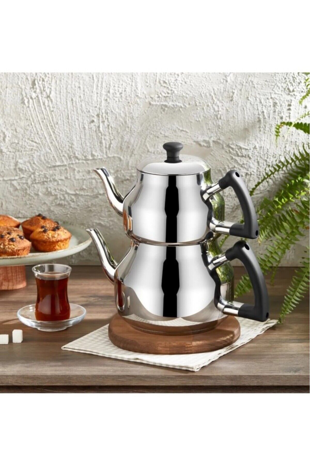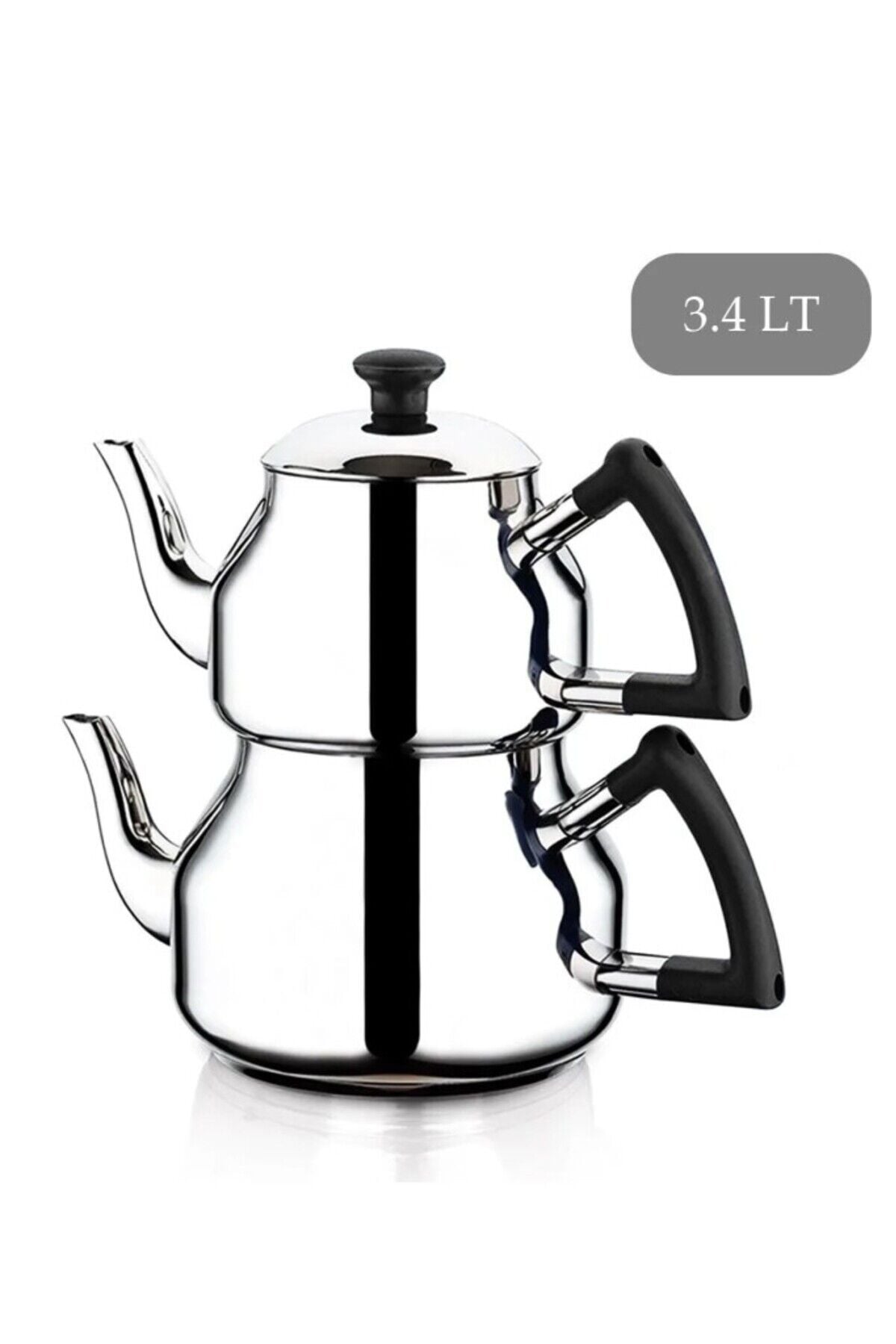 Özkent K-315 Marmaris Orta Çaydanlık Paslanmaz Çelik Çaydanlık Seti Siyah Krom nikel paslanmaz çelikten imal edilmiştir.; Dayanıklıdır ilk aldığınız parlaklığı daima korur.; Isısını uzun zaman korur.; Temizlemek için sıvı ve krem deterjan kullanılmalıdır.15,5 cm geniş kapsul tabana sahiptir.; Her türlü ocakta kaynamaya müsaittir.; Ergonomik ve el yakmayan çelik saplara sahiptir.; Materyal: Çelik Üst demlik 1,20 LtAlt demlik 2,20 Lt