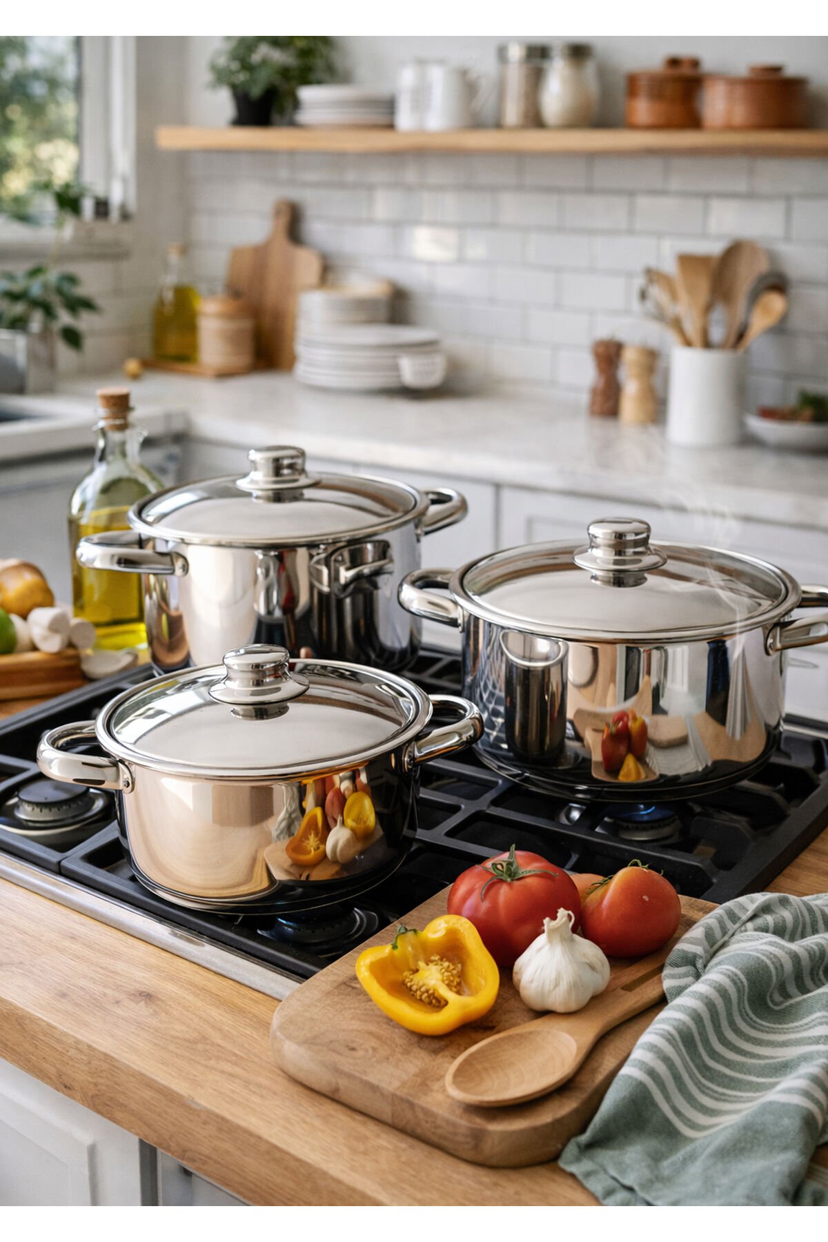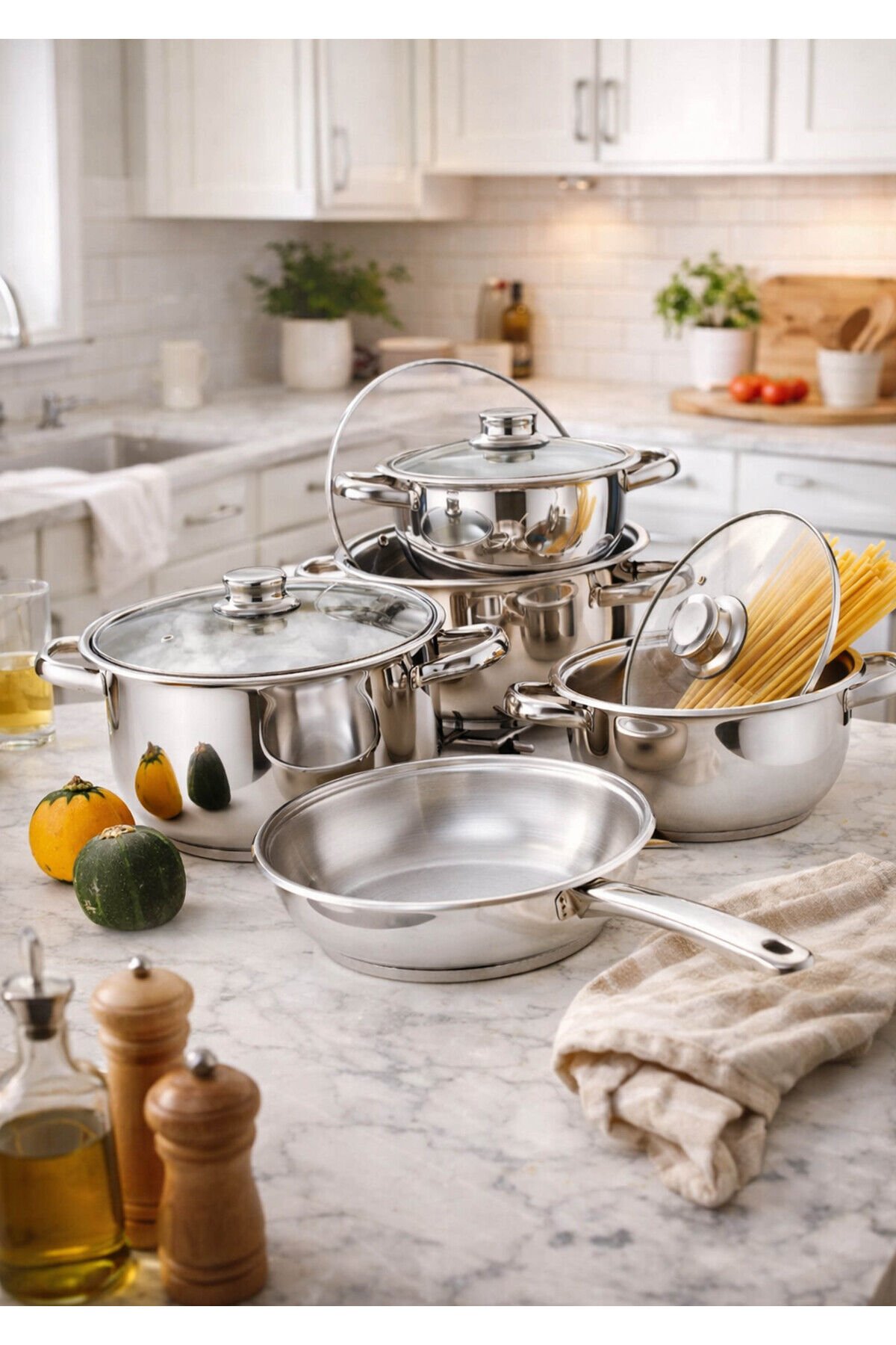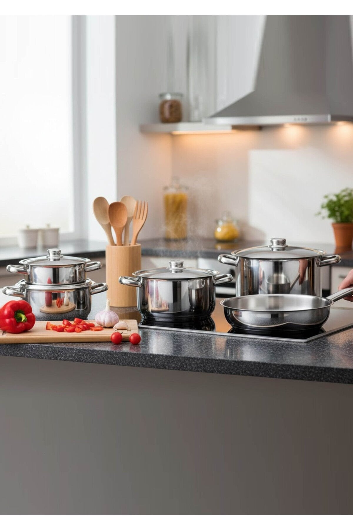 - Yüksek kaliteli çelik malzemeden üretilmiş olup, dayanıklılığı ve uzun ömürlü kullanımı garanti eder.; - İndüksiyon ocaklarda rahatlıkla kullanılabilecek yapısı ile mutfakta pratiklik sağlar.; - İç yüzeyi de çelikten yapılmıştır; bu sayede yiyeceklerinizi eşit şekilde pişirirken lezzetini korur.; - 9 parçadan oluşan set içeriğiyle farklı boyutlardaki tencereleriniz için ideal çözüm sunar.; - Bulaşık makinesinde kolayca temizlenebilme özelliği, kullanım sonrası hijyenik bir ortam yaratmanızı sağlar.; - Gıda temasına uygun olarak tasarlanmıştır; güvenle yemek hazırlamanız için uygundur.; - Türkiye'de üretilen bu ürün, yerel kaynaklı malzemelerle sürdürülebilir bir yaşam tarzını destekler.; - Gri renk seçeneğiyle modern mutfak dekorasyonlarına şık bir dokunuş ekler.; - 100 x 110 cm boyutlarındaki geniş yüzey alanı, büyük porsiyonlar için mükemmel performans sergiler.; - 3,45 litre kapasitesiyle çeşitli yemekleri aynı anda pişirebilmenize olanak tanır.; - Gülsan Çelik Eşya Tur.; İnş.; San.; ve Tic.; Ltd.; Şti.; tarafından garantili olarak sunulmaktadır.