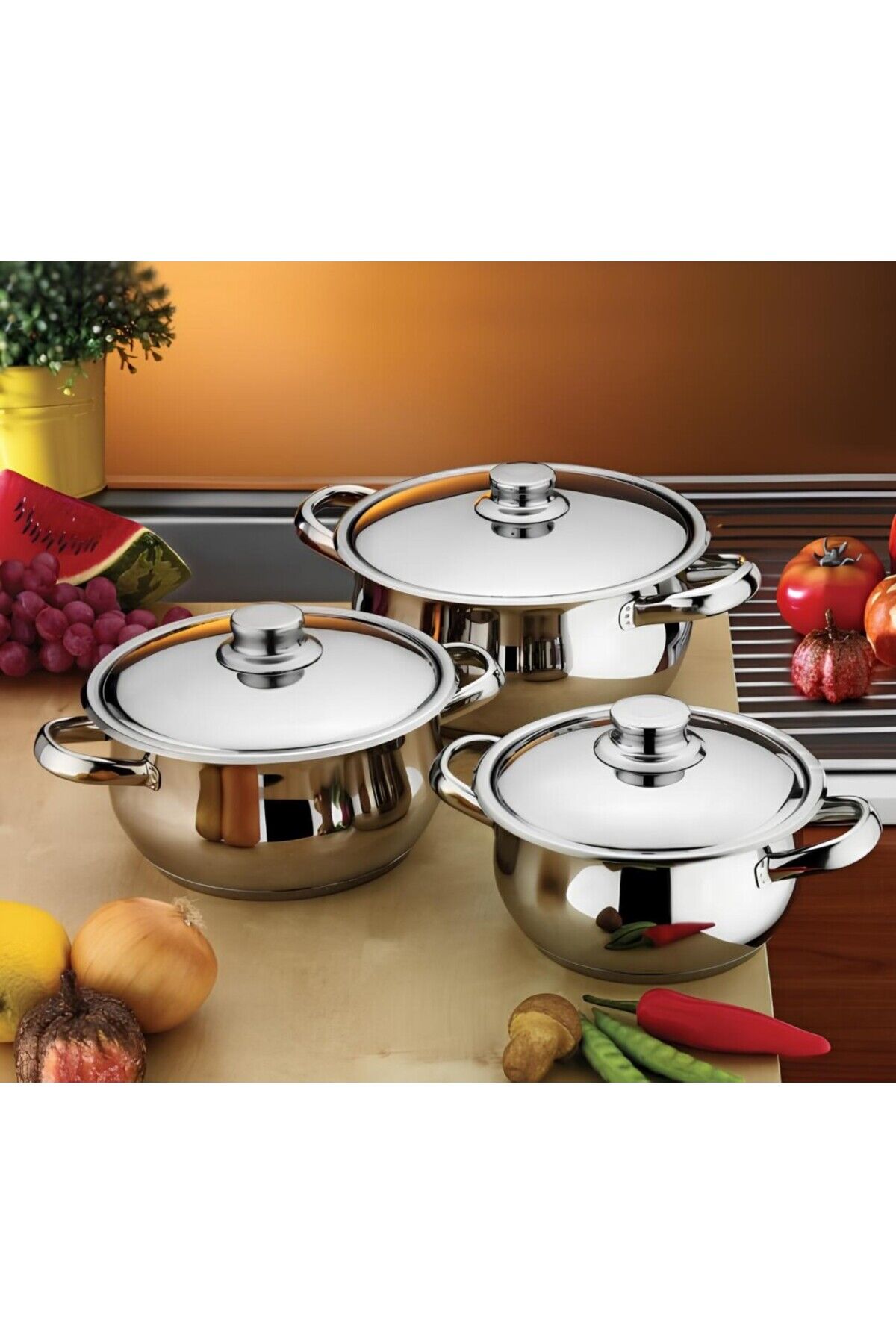 Milenyum 6 Parça Tencere Set İçeriği -12cm Derin Tencere -14cm Derin Tencere -16cm Derin Tencere (LÜTFEN TENCERE ÖLÇÜLERİNE DİKKAT EDİNİZ) KULLANMA VE BAKIMI Tencerelerinizi susuz olarak ocakta bırakmayın. ; Temizlemek için sabunlu ılık su kullanın. ; Sert temizleyicileri kullanmayın. ; Çıkmayan lekeler için sıcak sirkeli su tavsiye edilir. ; KALİTE NİTELİKLERİ Çok uzun ömürlü ve yüksek kaliteli 18-10 Cr-Ni paslanmaz çelikten imal edilmiştir. ; Tencereleriniz en az enerji ile kısa zamanda pişirme imkanına sahiptir. ; Tencereleriniz elektrikli, gazlı, halojen veya seramik ocakta pişirme imkanı sağlar. ; Hijyenik ve dayanıklıdır. ; Ömür boyu kullanılabilir. ; Isıyı muhafaza eden süper kapsül tabana sahiptir.;