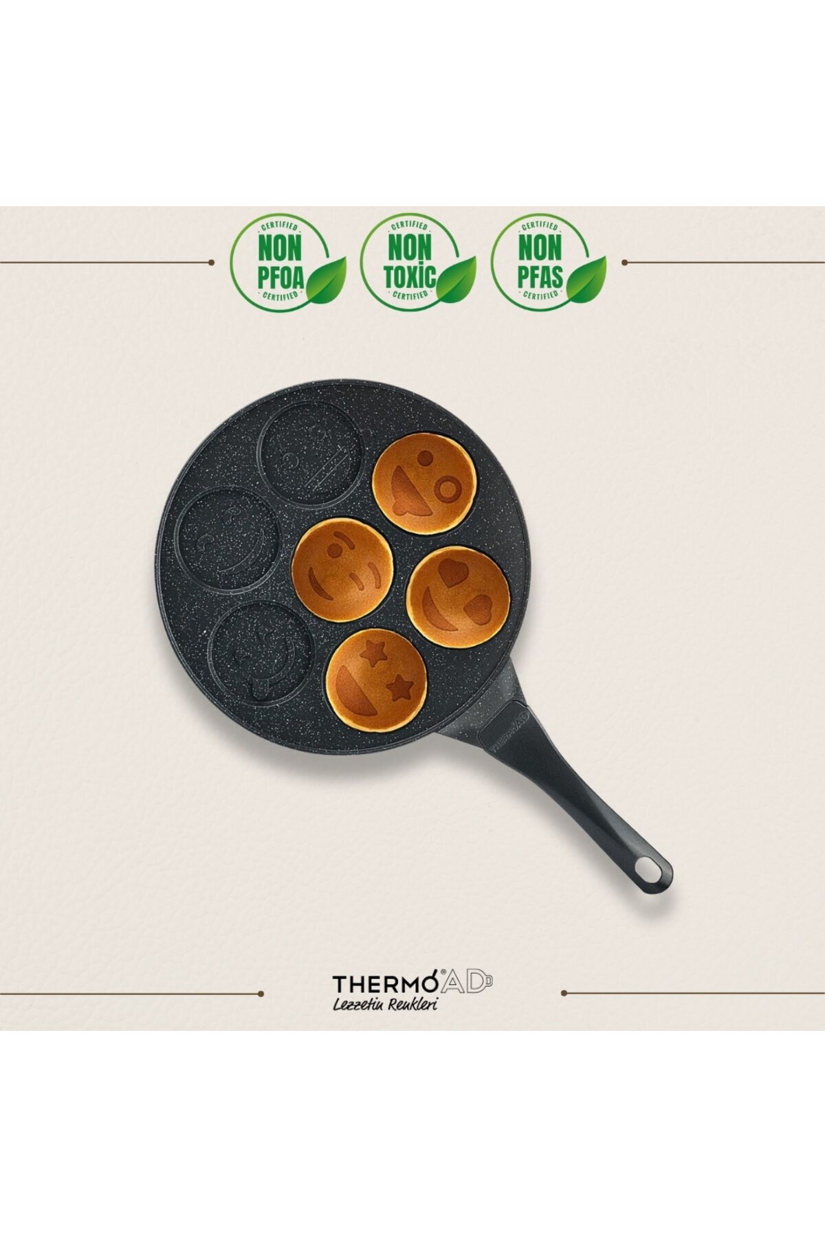 Yapışmaz yüzeyi sayesinde granit krep tavanızda mükemmel pankekler hazırlayın; lezzetlerinizi koruyun ve temizliği kolaylaştırın.; Tek parça set olarak gelen bu granit krep tava, ihtiyacınız olan tek şeydir; diğer aletlerle uğraşmanıza gerek yok.; Granit dış ve iç malzemeleriyle şık görünümüyle mutfak dekorasyonunuza estetik bir dokunuş katarken, sağlamlığıyla da uzun ömürlü kullanım sunar.; Granit malzeme ısının eşit şekilde dağılmasına yardımcı olur, böylece pankeklerinizin her tarafı aynı anda mükemmel şekilde pişer.; Gri renk seçeneğiyle modern mutfakların vazgeçilmez aksesuarlarından biri haline gelen granit krep tavanızla kahvaltı ritüelinizi renklendirin.;