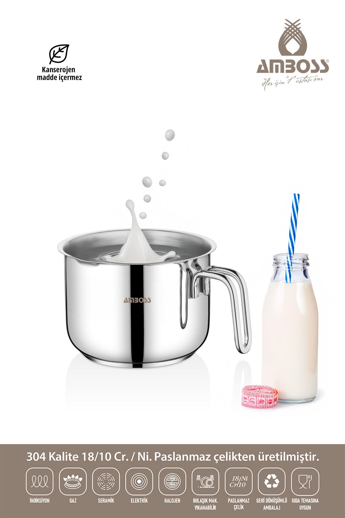 • 304 Kalite 18/10 Cr.; /Ni Paslanmaz Çelikten Üretilmiştir.;