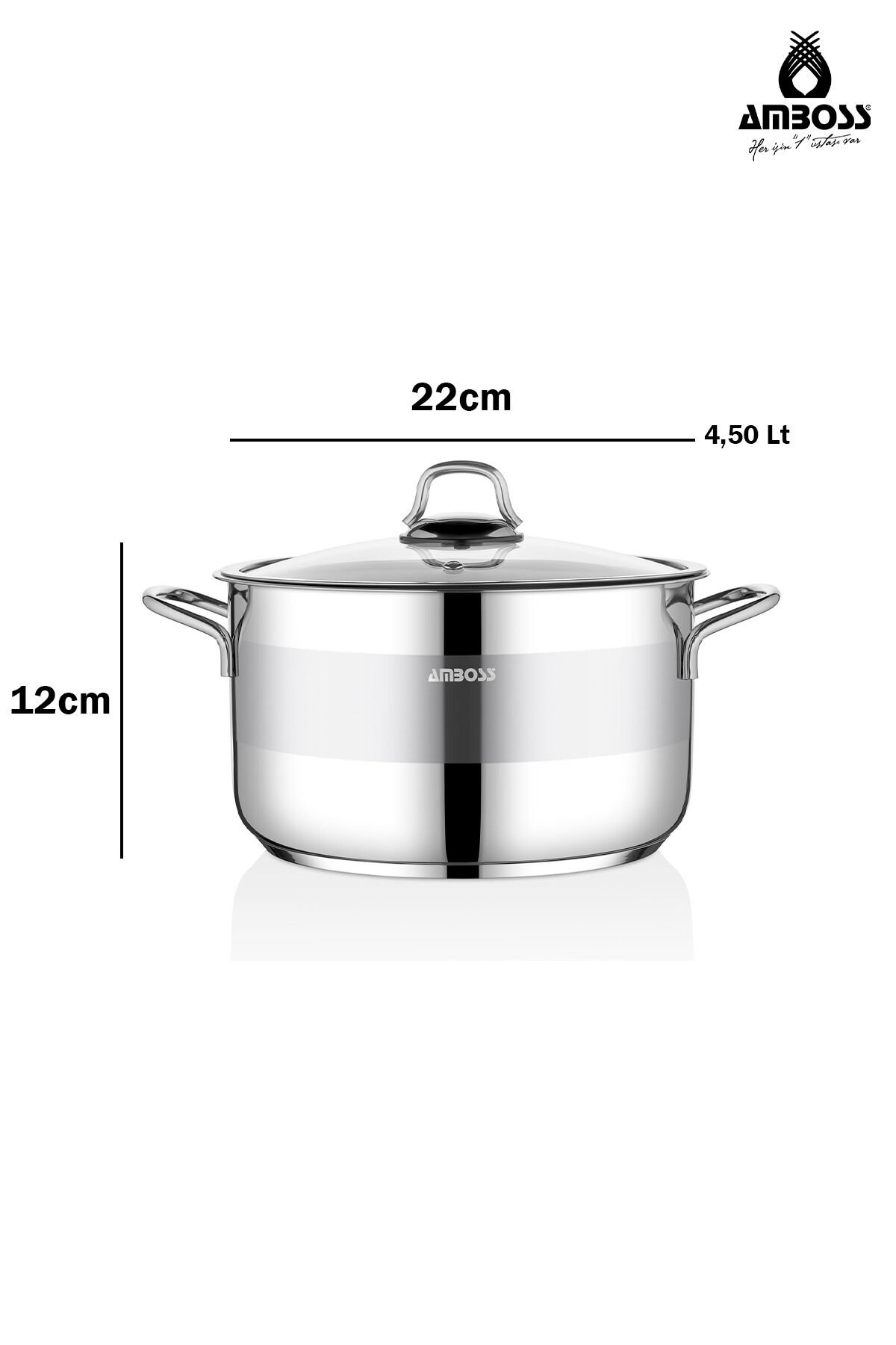 Amboss Ambos Saphire Paslanmaz Çelik Cam Kapaklı Derin Tencere 22 Cm - Gümüş