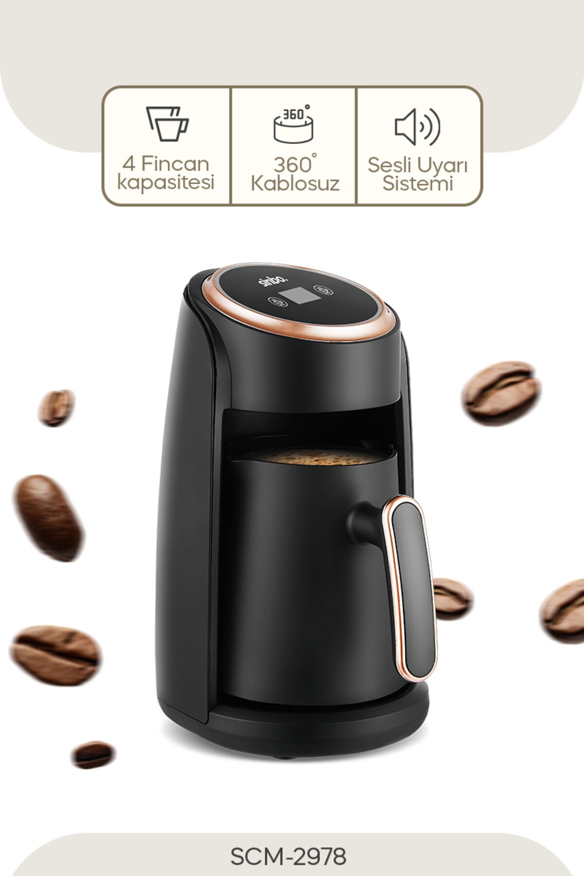 Dayanıklı plastik gövde yapısı ile uzun ömürlü kullanım sunar; Kolay temizlenebilir ve hafif plastik cezve malzemesi, pratik bir kullanım sağlar; Tek seferde 4 fincan Türk kahvesi hazırlama kapasitesi ile misafirlerinize hızlıca ikram yapabilirsiniz; 2 yıl garanti süresi, ürününüzün kalitesine olan güveni ve müşteri memnuniyetini ön planda tutar; Otomatik kapanma özelliği sayesinde enerji tasarrufu sağlar ve güvenliğinizi artırır;