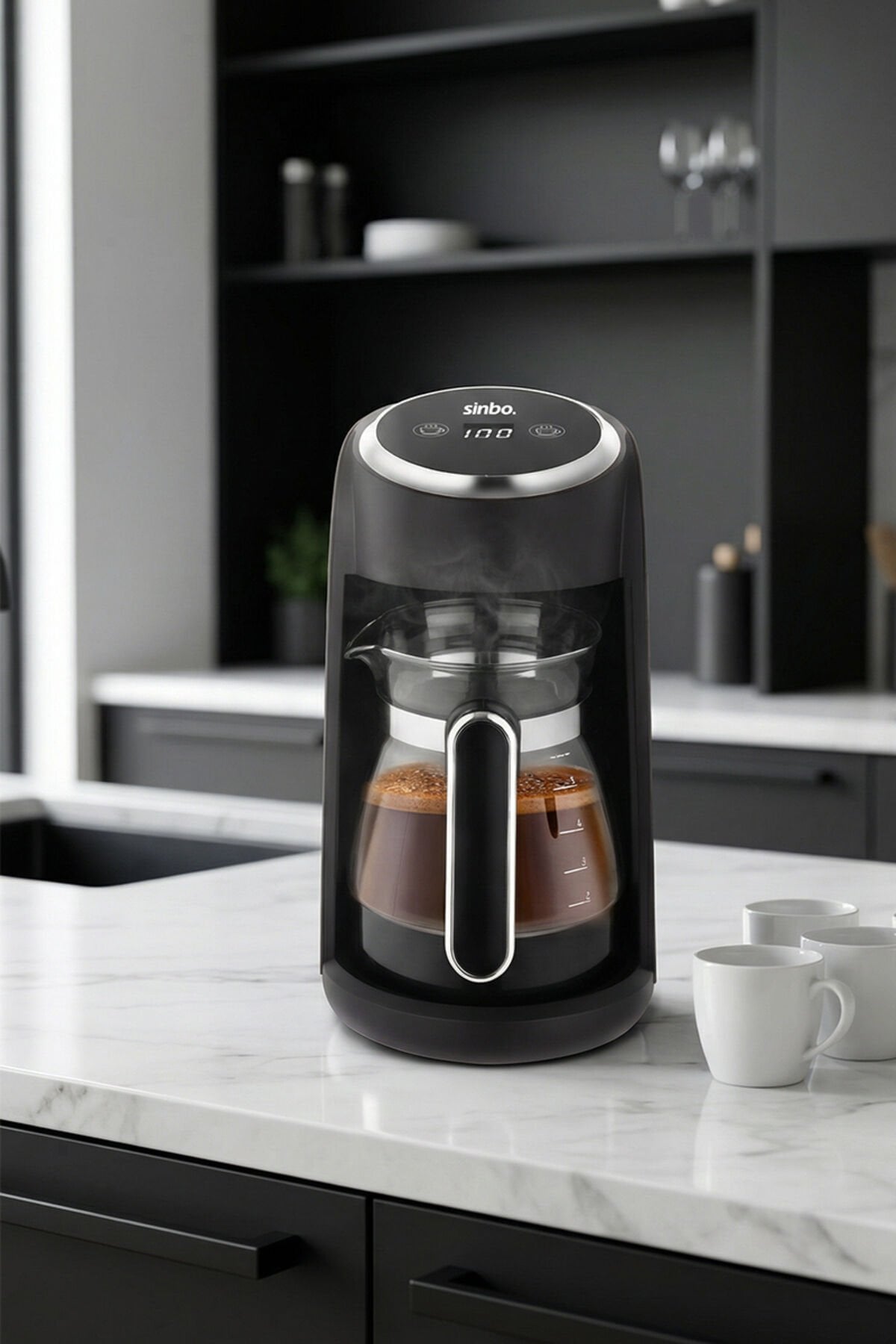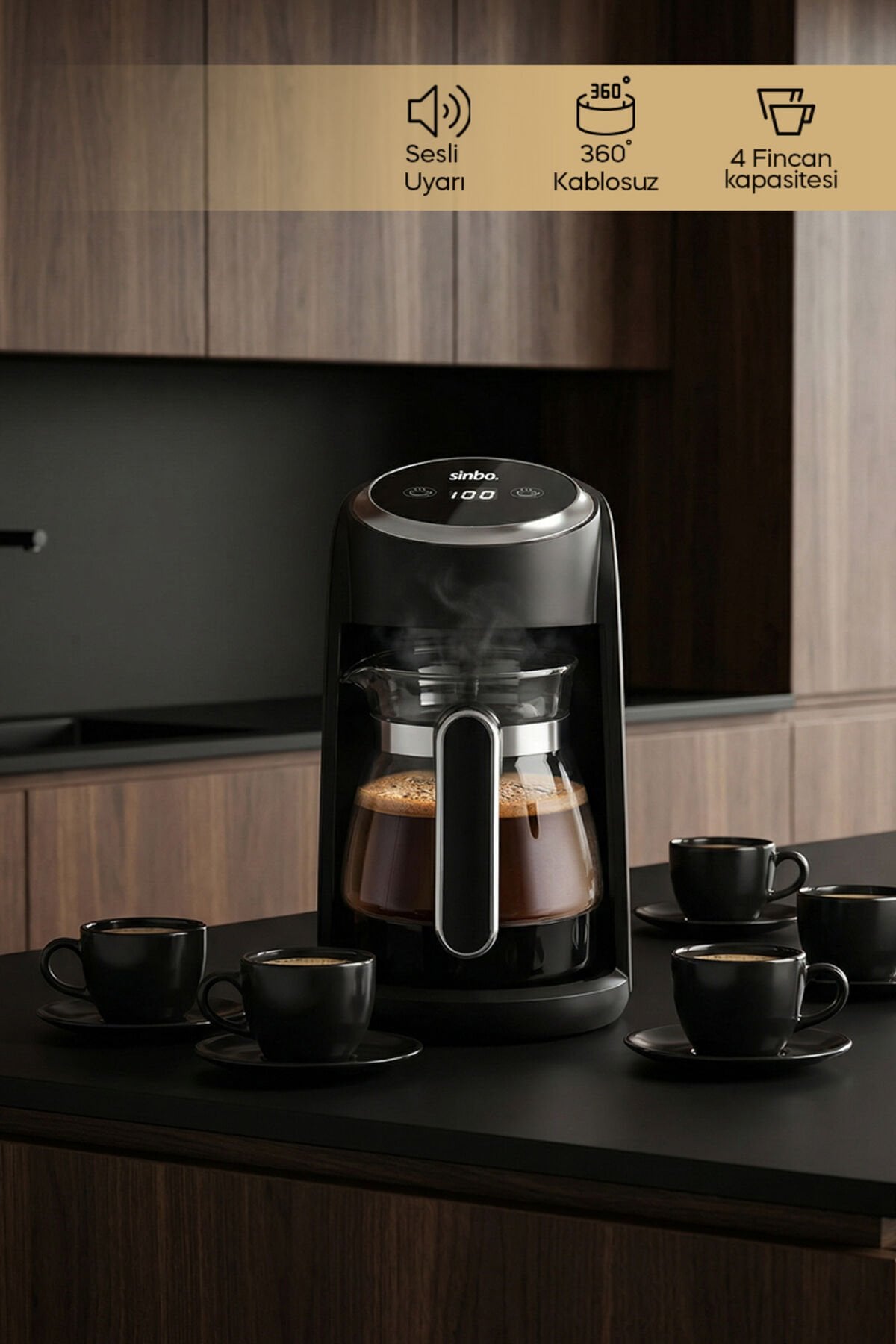 • Paslanmaz çelik rezistans • Dayanıklı borosilikat cam cezve • 1-4 fincan kapasitesi • Ağır ateşte pişirme • Taşma önleyici sistem • Sesli uyarı sistemi • Yıkanabilir cezve