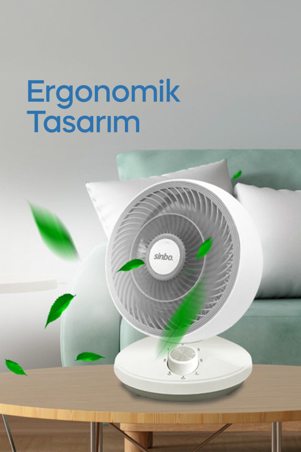 - Enerji tasarrufu sağlayan tasarımı ile SF-7701 masaüstü fan, elektrik faturalarında gözle görülür bir düşüş sağlar.; ; - Hafif ve kompakt yapısı sayesinde masanızda kolayca yer bulur ve çalışma alanınızda estetik bir görünüm oluşturur.; ; - Yüksek performanslı motoru ile hızlı ve etkili hava akışı sunarak sıcak günlerde serinlik hissi verir.; ; - Kolay kurulumu ve pratik kullanımıyla günlük işlerinizde size zaman kazandırırken konforunuzdan ödün vermezsiniz.; ; SINBO SF 7701 MİNİ FAN Salınımlı fan Rpm: 2400r/dak (dönme hızı) Rüzgar hızı: 4.8m/s Yaprak çapı: 150mm Duvara asılabilir 90° yukarı ve aşağı manuel ayarlama, 45° otomatik olarak sola ve sağa hareket edebilir Koku difüzörü ile AC220-240V, 50/60Hz, 25W;