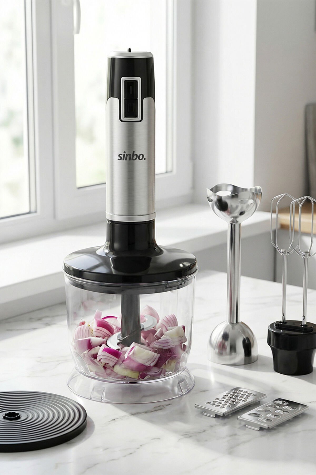 Sinbo Shb-3186 El Blender Seti •Ayrılabilir gövde •Ayarlanabilir hız kademesi • Turbo fonksiyon •Paslanmaz çelik blender aparatı •Paslanmaz çelik çiftli çırpma aparatı •Paslanmaz çelik doğrayıcı bıçak •Rendeleme ve dilimleme diskleri •2 L bulaşık makinesinde yıkanabilir doğrayıcı hazne •Emniyet sistemi •Yüksek sağlayan DC Motor •Ergonomik tasarım •Güç (W) : 1000 Ürün Özellikleri Güç800 - 1200 Watt Garanti Süresi2 Yıl RenkGri Garanti TipiResmi Distribütör Garantili Hacim1 - 2 L MateryalPlastik DoğrayıcıVar Blender Ayağı MateryaliPlastik ÇırpıcıVar Hız Ayarı2 Kademeli Rendeleme ve Dilimleme DiskiVar Tema / StilModern Priz TipiC / F Frekans50 Hz / 60 Hz Voltaj220 - 240 V