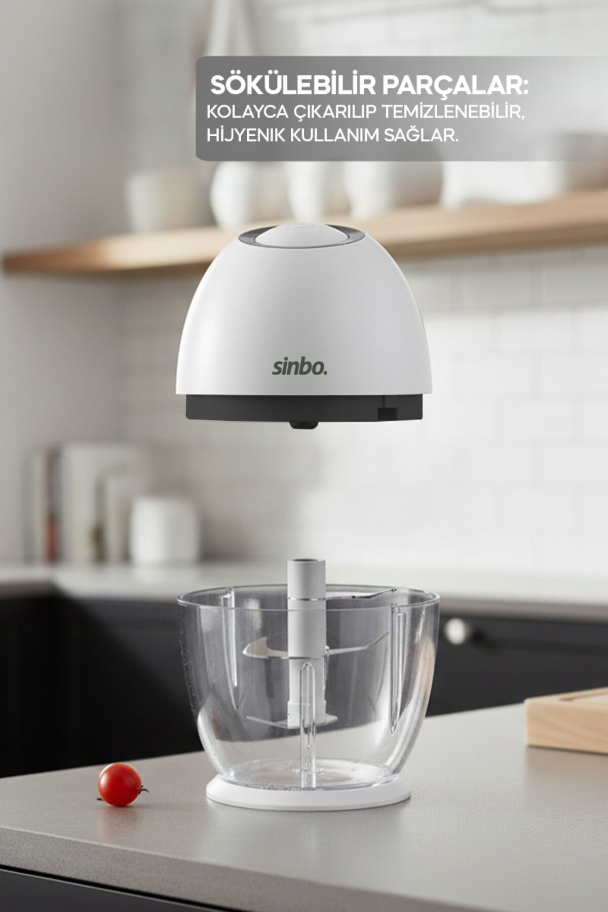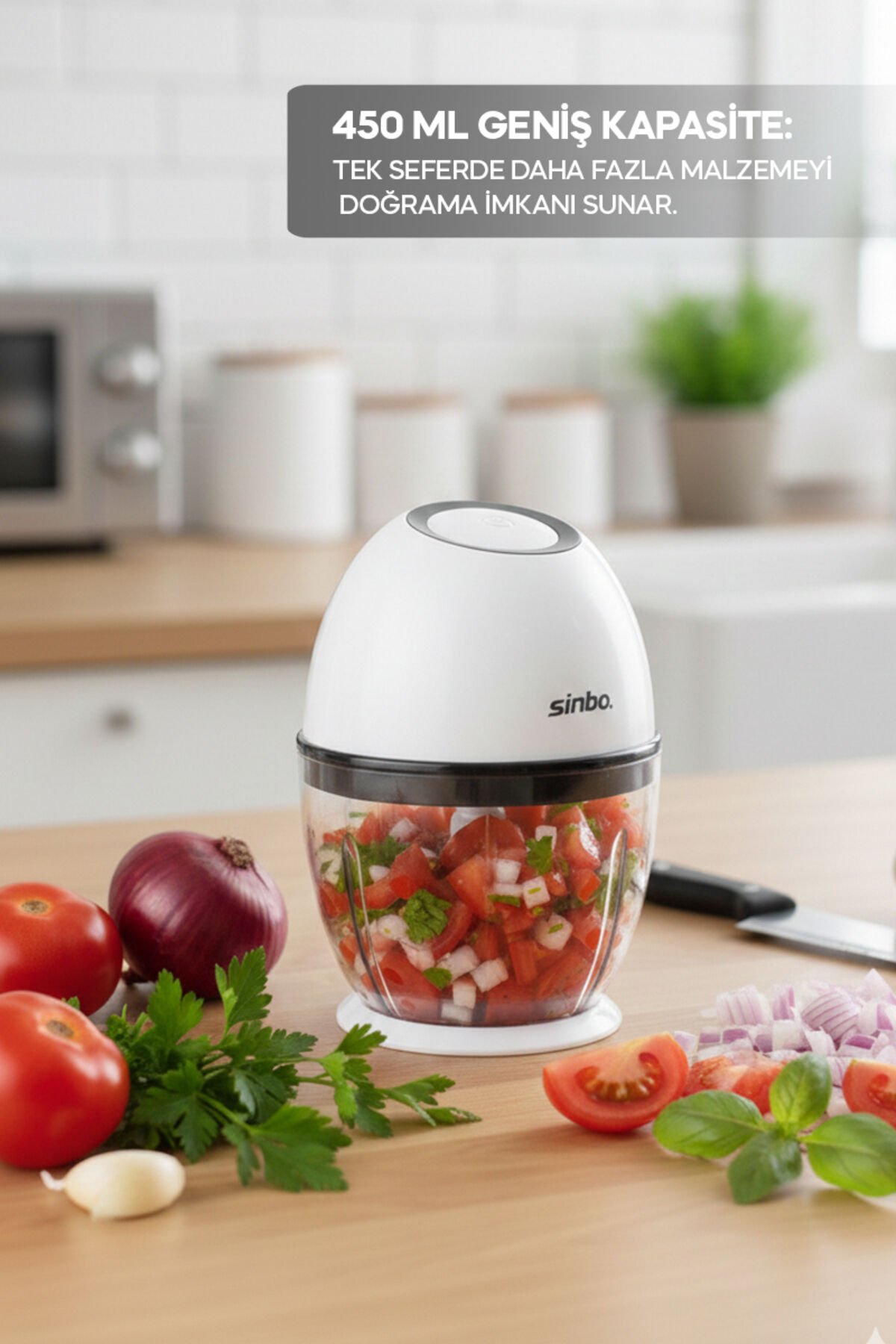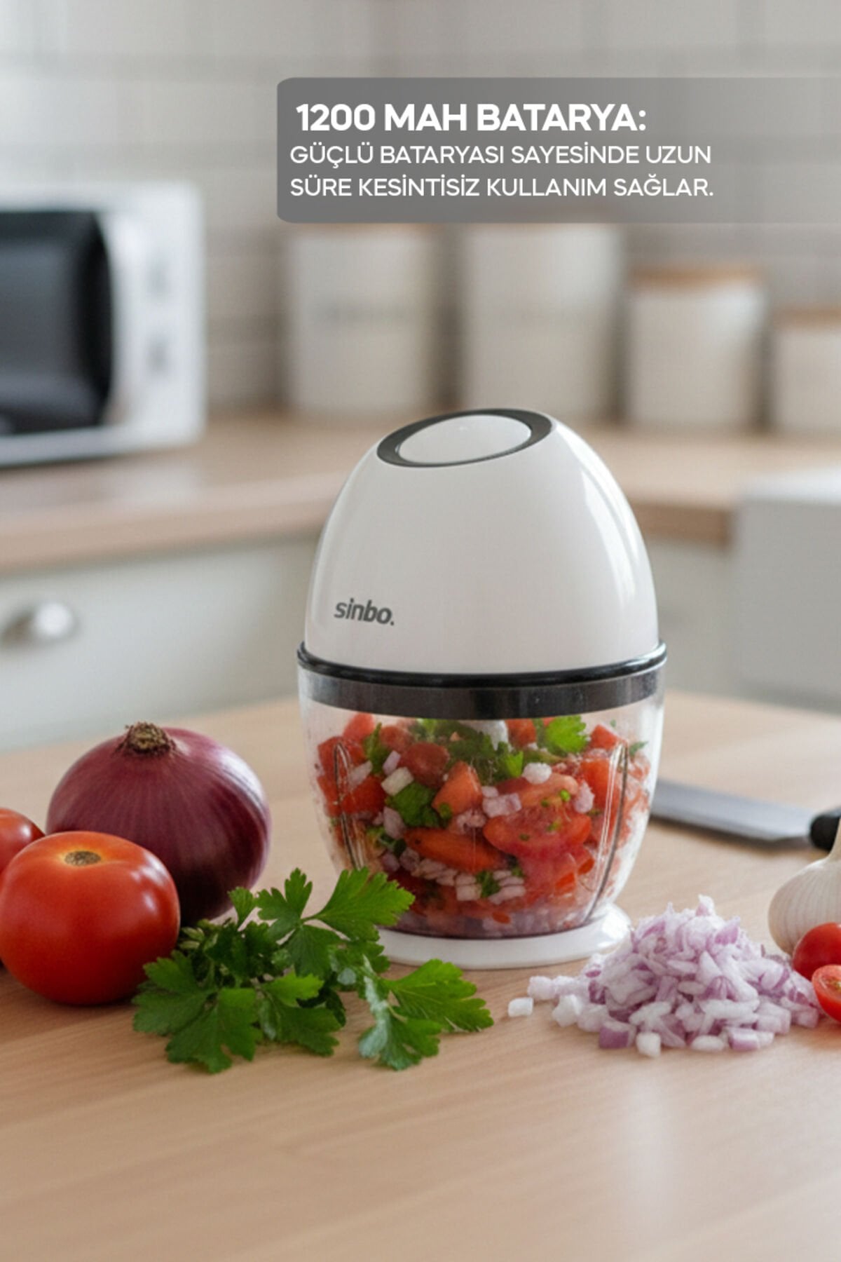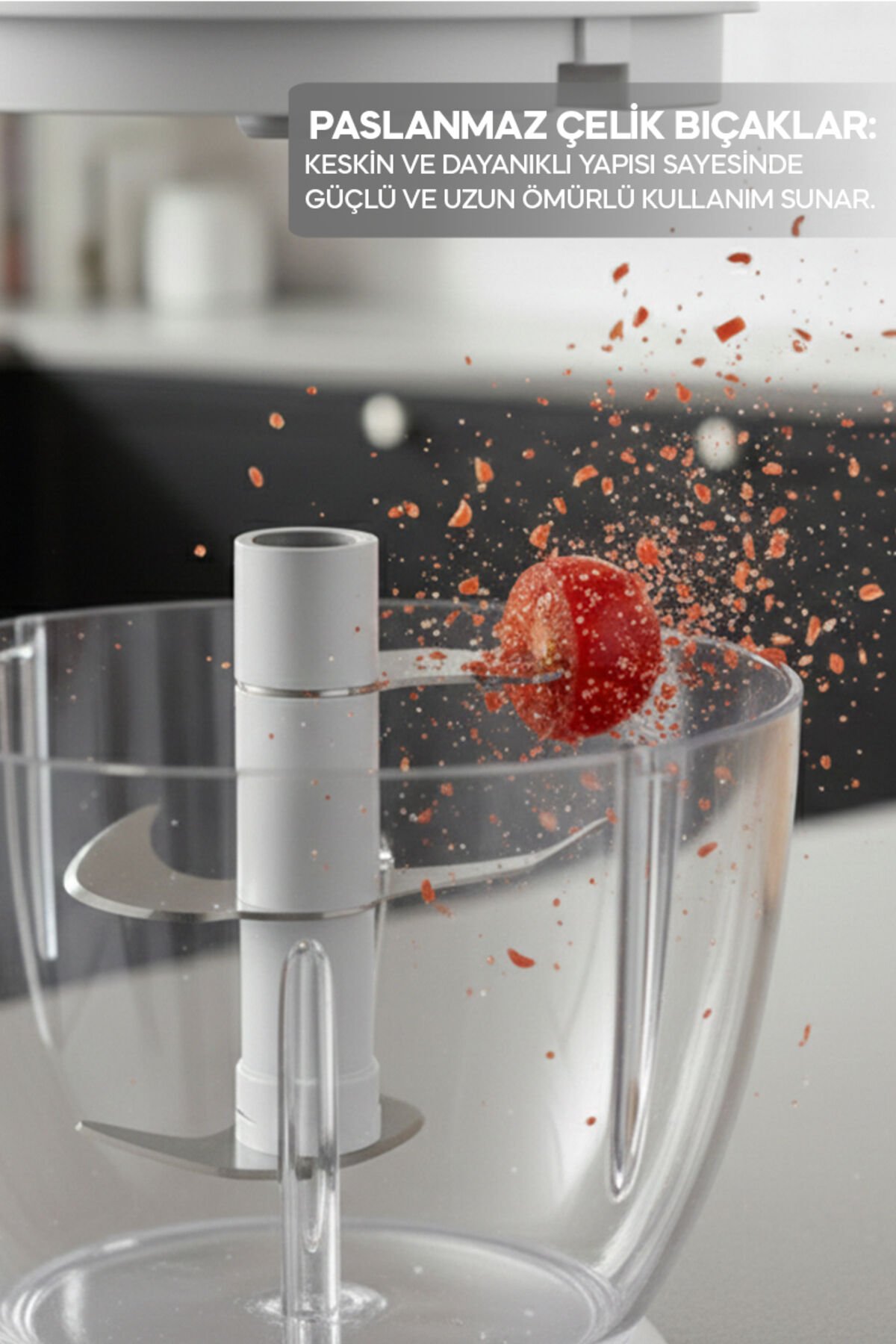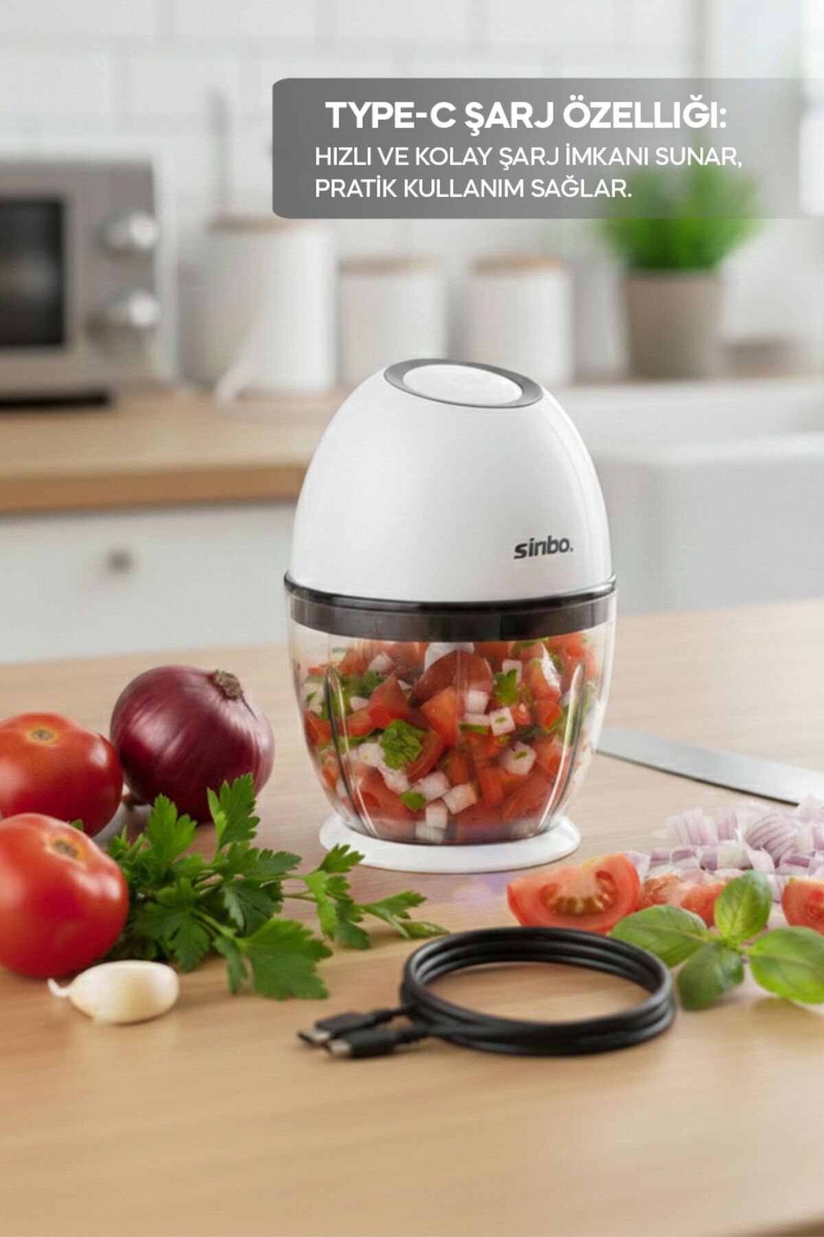 450 ml geniş hazne kapasitesi;Güçlü motor ile yüksek kesme performansı;Kablosuz ve taşınabilir kullanım;Sarımsak, soğan, sebze ve kuruyemişler için ideal doğrama;3’lü paslanmaz çelik bıçak sistemi;Sökülebilir parçalar sayesinde kolay temizlik;Kompakt ve şık tasarım;Tek tuş ile pratik kullanım;Şarj gösterge ışığı;Emniyet kilidi ile güvenli kullanım;Type-C şarj girişi;1200 mAh batarya ile uzun süreli kullanım