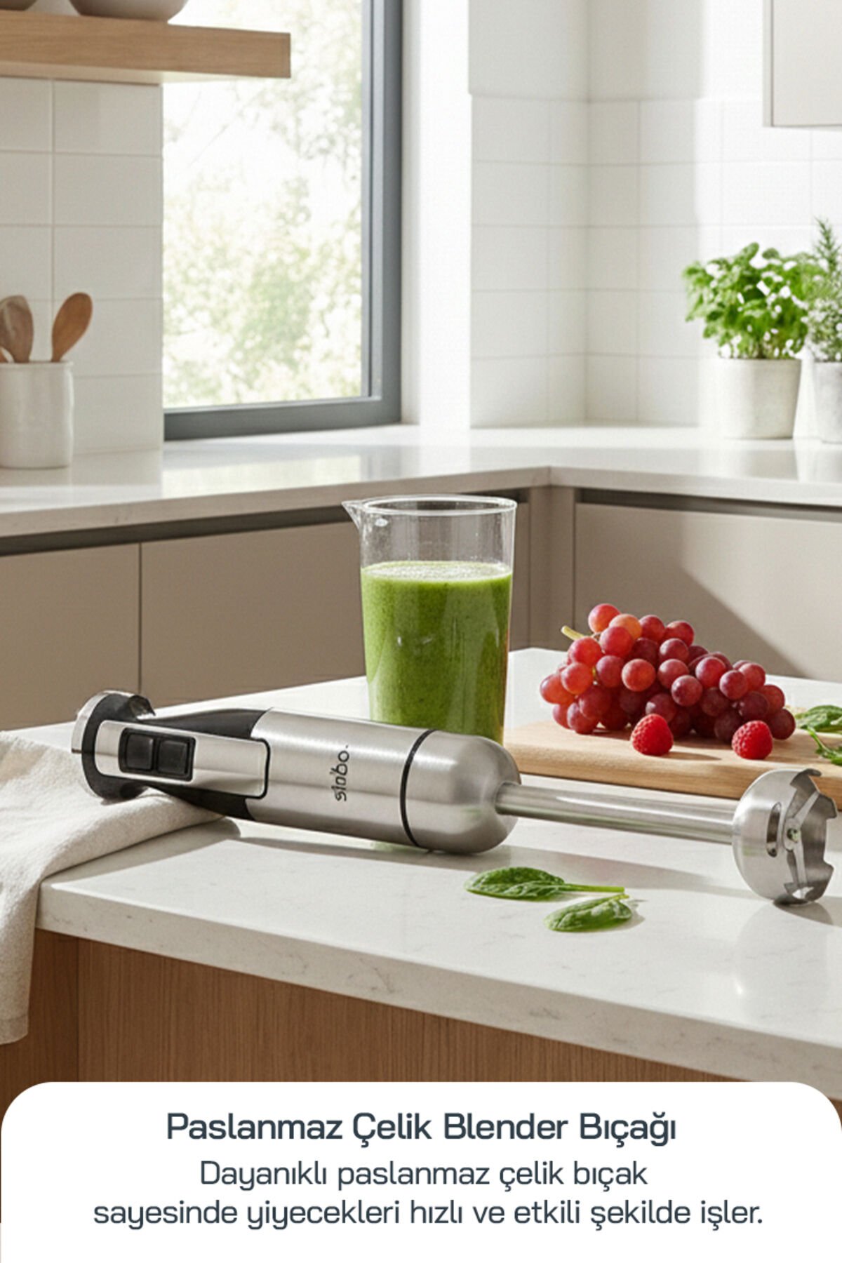 Ürün Özellikleri; Ayrılabilir paslanmaz çelik gövde ile kolay kullanım ve temizlik; Ayarlanabilir hız kademesi sayesinde kontrollü karıştırma; Paslanmaz çelik blender aparatı ile homojen ve pürüzsüz sonuçlar; Güvenli kullanım için emniyet sistemi; Yüksek sağlayan güçlü DC motor; Ergonomik tasarım ile rahat ve dengeli tutuş; Paslanmaz çelik dört bıçaklı yapı ile etkili karıştırma; Dayanıklı ve uzun ömürlü kullanım