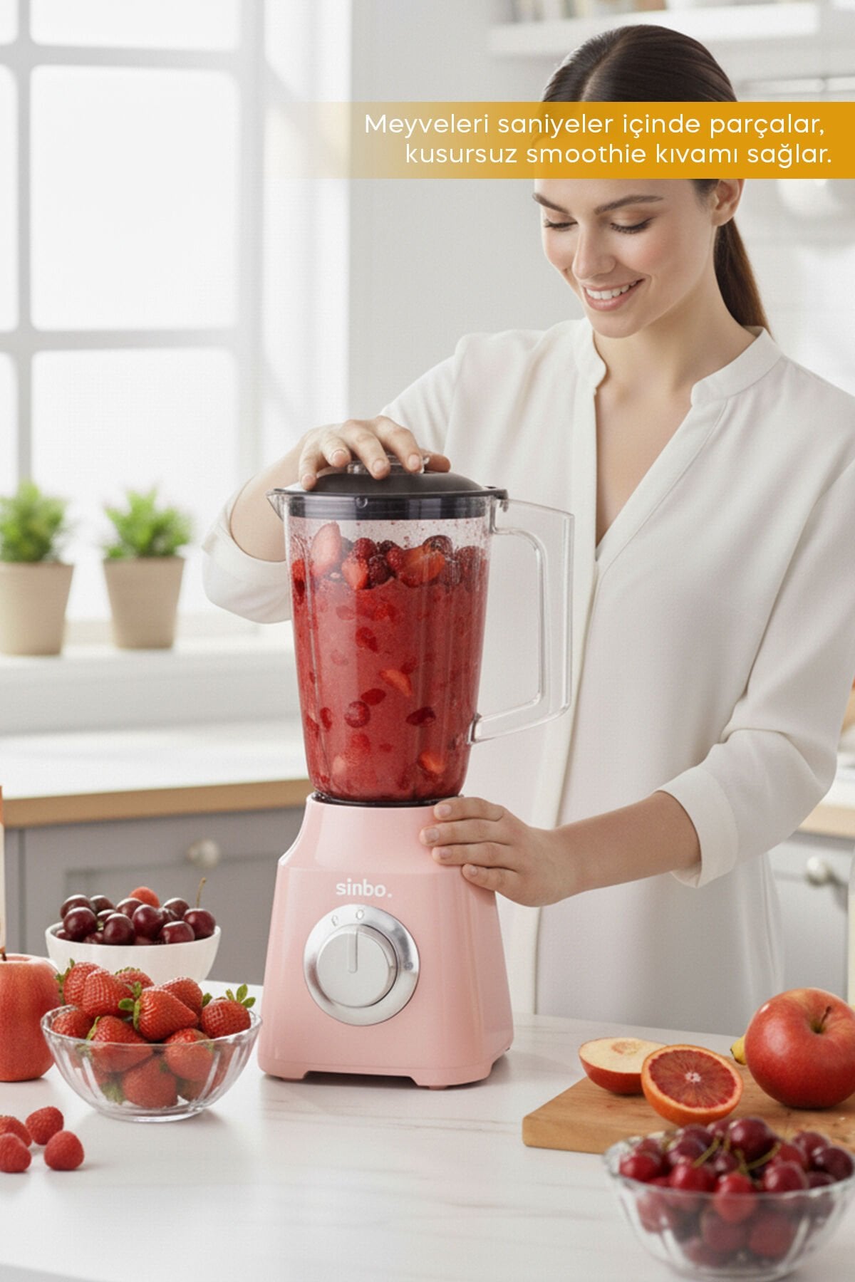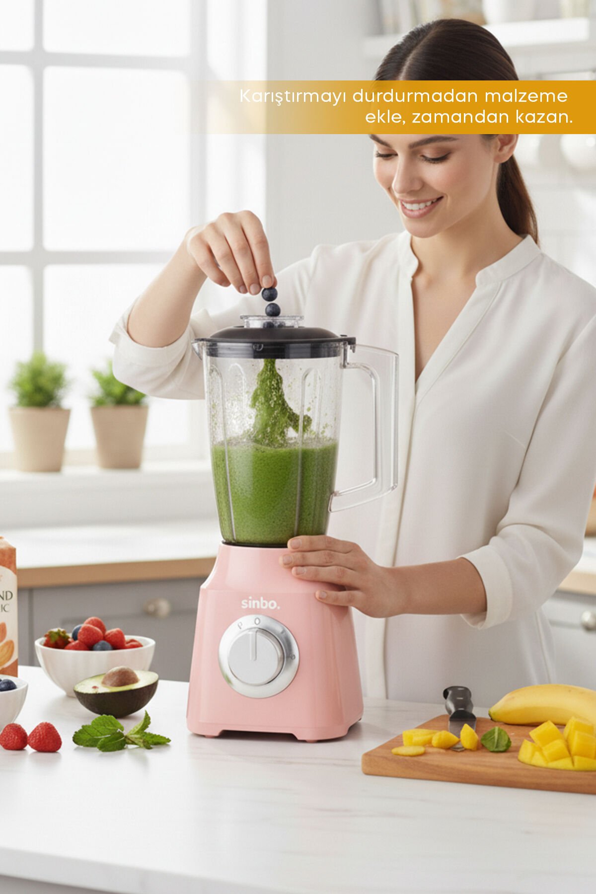 TR – SHB-7517 Turbo Blender;350W güçlü motor;1.5 L sızdırmaz ve yıkanabilir hazne;Çıkarılabilir besleme ağzı kapağı;Çıkarılabilir ve yıkanabilir paslanmaz çelik 4’lü blender bıçağı;Smoothie hazırlama özelliği;2 kademeli hız ayarı (yüksek / düşük);Anlık çalıştırma (Pulse) fonksiyonu;Şeffaf öğütücü kapağı;Emniyet sistemi;Kaymaz taban;Hızlı ve pürüzsüz kullanım;--------------------------------------------------------------------------------;Açıklama:;Sinbo SHB-7517 Turbo Blender, 350W motor gücü ve 1.5 litrelik sızdırmaz haznesi ile günlük kullanımda pratik ve etkili çözümler sunar. Paslanmaz çelik 4’lü bıçak sistemi sayesinde meyve, sebze ve buzlu karışımları kolayca parçalar. Smoothie hazırlama özelliği, 2 kademeli hız ayarı ve pulse fonksiyonu ile istenilen kıvamı elde etmeyi sağlar. Emniyet sistemi ve kaymaz tabanı güvenli kullanım sunarken, şık ve ergonomik tasarımı mutfağınıza uyum sağlar.;Üretici: ;SİNBO KÜÇÜK EV ALETLERİ SANAYİ VE TİCARET ANONİM ŞİRKETİ ;Mail: ;;Adres: ;Yakuplu, Dereboyu Cd No:10 İç Kapı No:1, 34524 Beylikdüzü/İstanbul