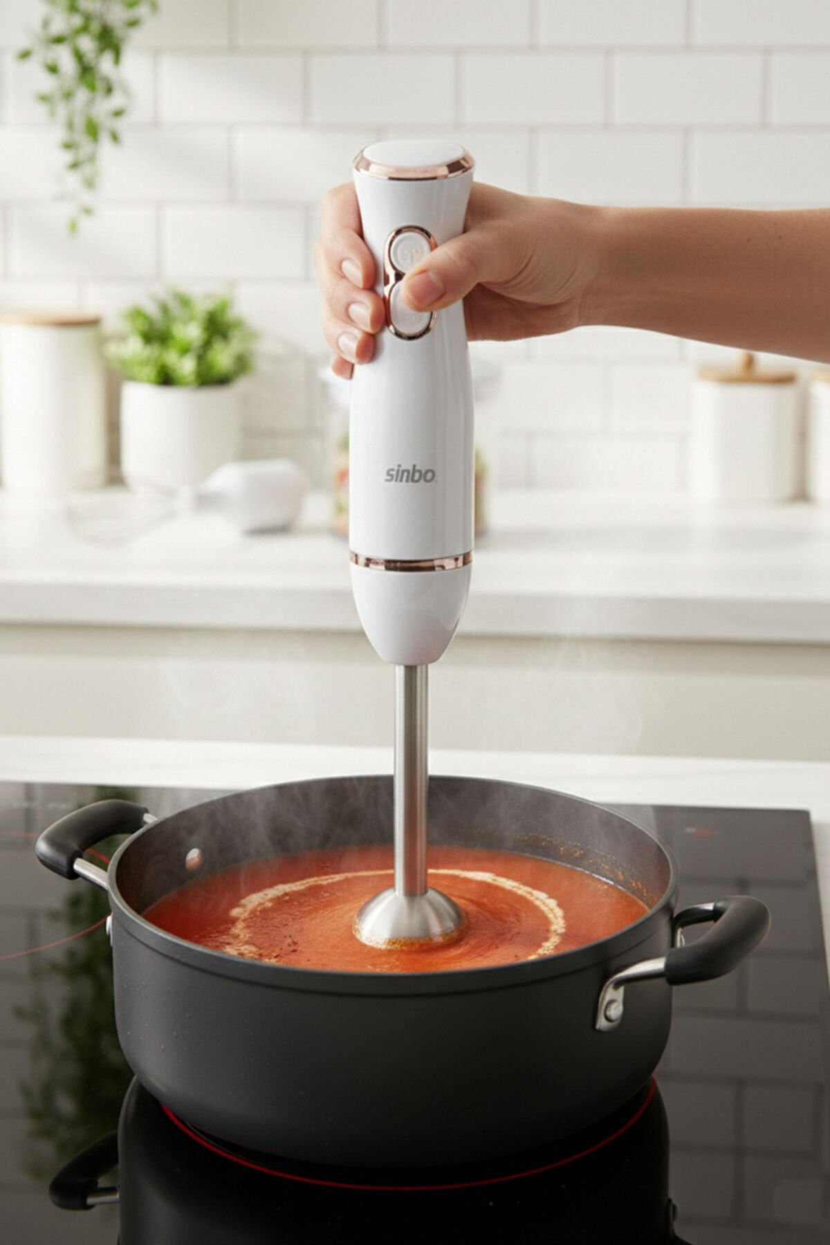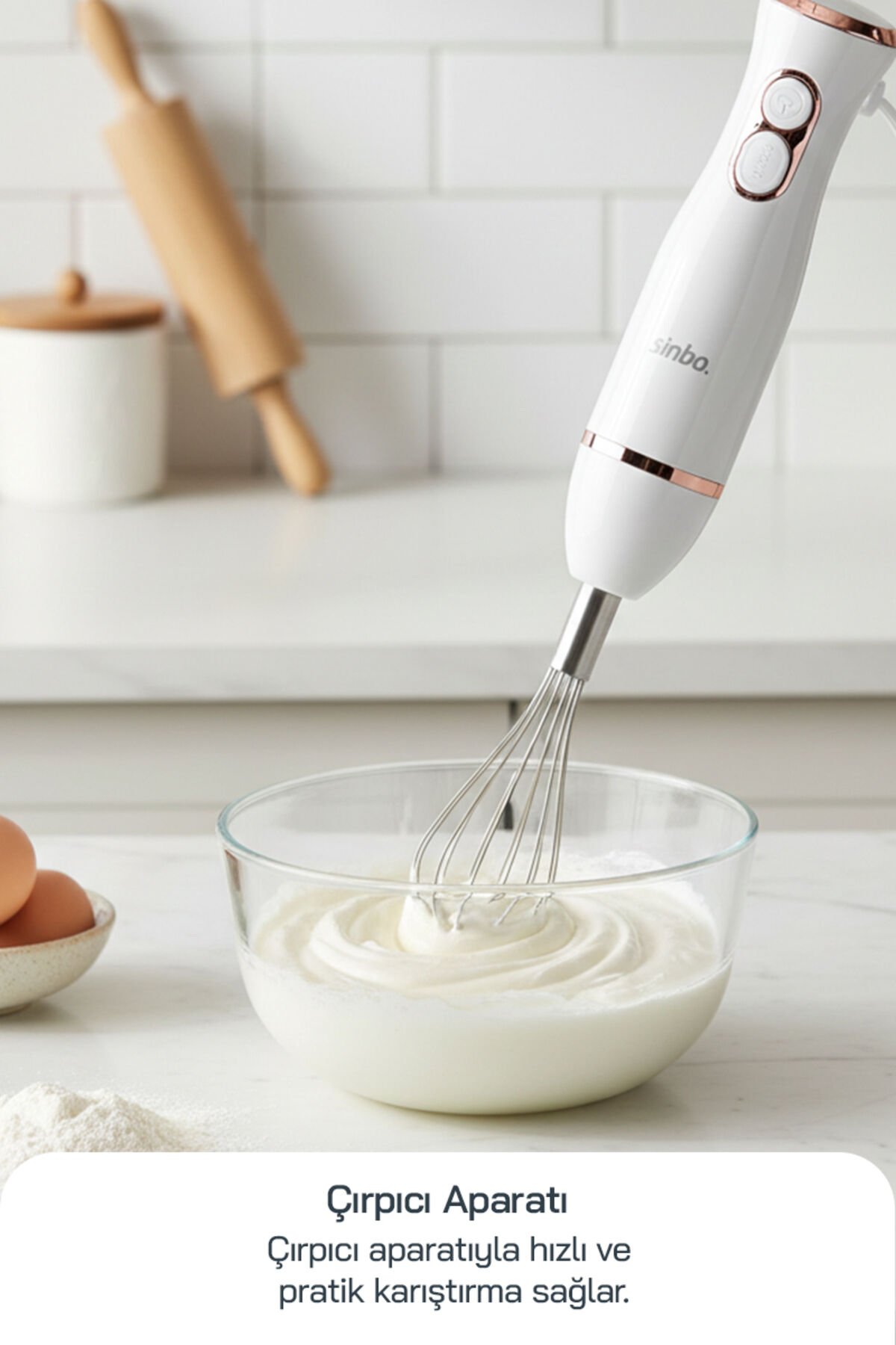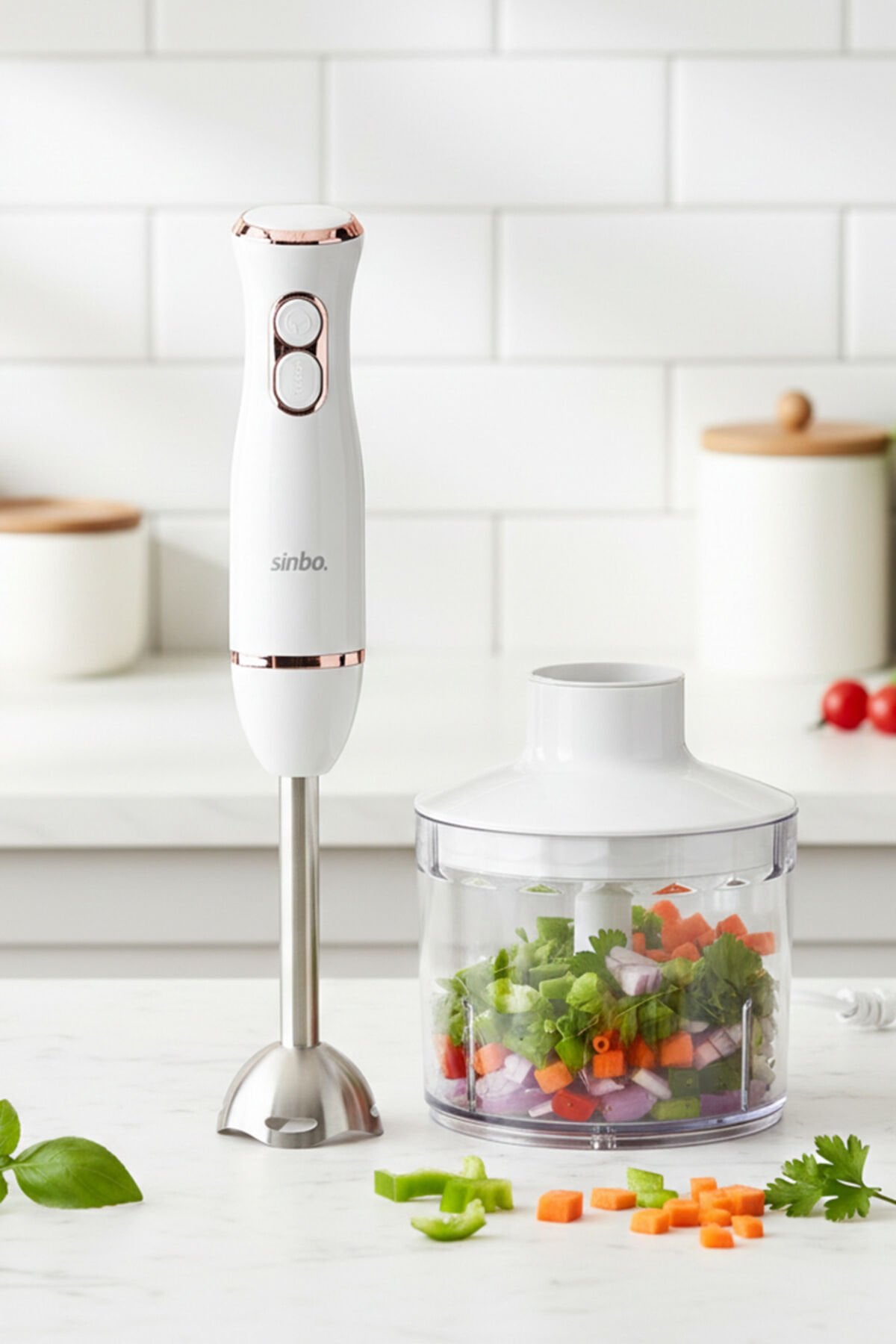 Ürün Özellikleri:;• Ayarlanabilir 2 hız kademesi;• Paslanmaz çelik blender aparatı;• Paslanmaz çelik çırpma aparatı;• Paslanmaz çelik doğrayıcı bıçak;• 700 ml bulaşık makinesinde yıkanabilir doğrayıcı hazne;• Emniyet kilit sistemi;• Ergonomik ve şık tasarım;• 400 W Güçlü motor