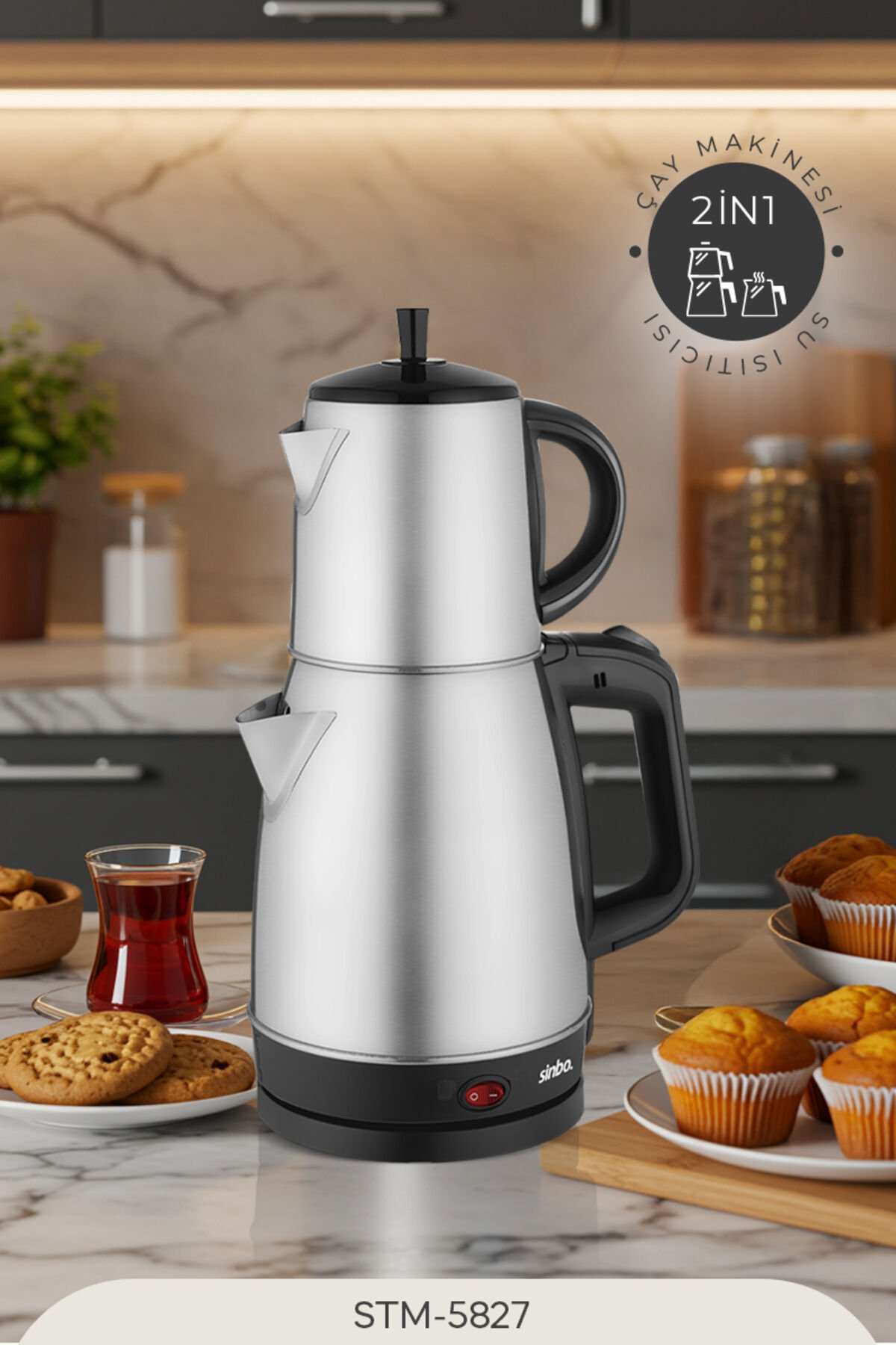 Güçlü Özelliklere Sahip Bir Model Dual ısıtma sistemine sahip olan ürün, %90 oranında enerji tasarrufu sağlayarak kullanıcılarına hoşnut kalacakları bir kullanım olanağı sunuyor. Ürün seti, aşırı ısınma ve susuz çalışmayı önleyen emniyet sistemi sayesinde güvenli bir kullanıma imza atıyor. Kablo saklama yuvasına sahip olan ürün seti böylece kablo karmaşıklığının önüne geçiyor. Ürün seti, özel kapak tasarımı sayesinde su ısıtıcı olarak da kullanılabilme imkânı sunuyor. 360 derece dönebilme özelliği sayesinde pratik bir kullanım olanağı tanıyor. Su/kireç filtresi özelliğiyle su içerisinde kireç oluşumuna izin vermeyen ürün seti, kullanıcılarına sağlıklı bir çay keyfi fırsatı sunuyor. Gelişmiş Teknik Özellikler Renk: Inox Demlik Malzemesi: Çelik Kaynama Göstergesi: Var Güç: 2200 W Kaynama Göstergesi: Var Kalite ve Kullanıcı Odaklı Bir Marka Kalite odaklı üretim anlayışıyla tanınan Sinbo, pişirme-kızartma ürünlerinden mutfak robotlarına, kişisel bakım ürünlerinden elektrikli süpürgelere, ütülerden hava nemlendiricilere kadar zengin bir ürün ağıyla faaliyet gösteriyor. Üretime başladığı ilk günden beri kullanıcı ihtiyaçlarını dikkate alarak imalat yapan Sinbo, modern üretim tesisi, geniş satış ağı ve satış sonrası destek birimleriyle kullanıcılara hizmet vermeye devam ediyor. Çay FiltresiVarDemlik Kapasitesi (L)0.7Demlik MalzemesiÇelikGövde MalzemesiÇelikGüç (W)2200Kaynama GöstergesiVarOtomatik KapanmaVarRenkInoxSu Isıtıcı Kapasitesi (L)1.7Su/Kireç FiltresiVarSusuz Çalışma EmniyetiVar