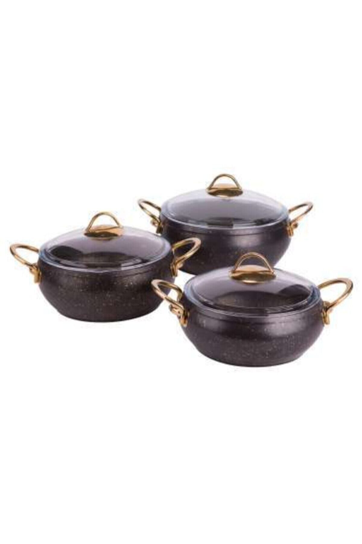 Granit iç ve dış yüzeyi sayesinde uzun ömürlü kullanım sunar ve mutfakta şıklığıyla dikkat çeker; Yapışmaz taban özelliği ile pişirme sırasında yiyeceklerin tencereye yapışmasını önler, temizliği kolaylaştırır; Siyah altın sap tasarımı, modern mutfak dekorasyonlarına uyum sağlar ve estetik bir görünüm sunar;