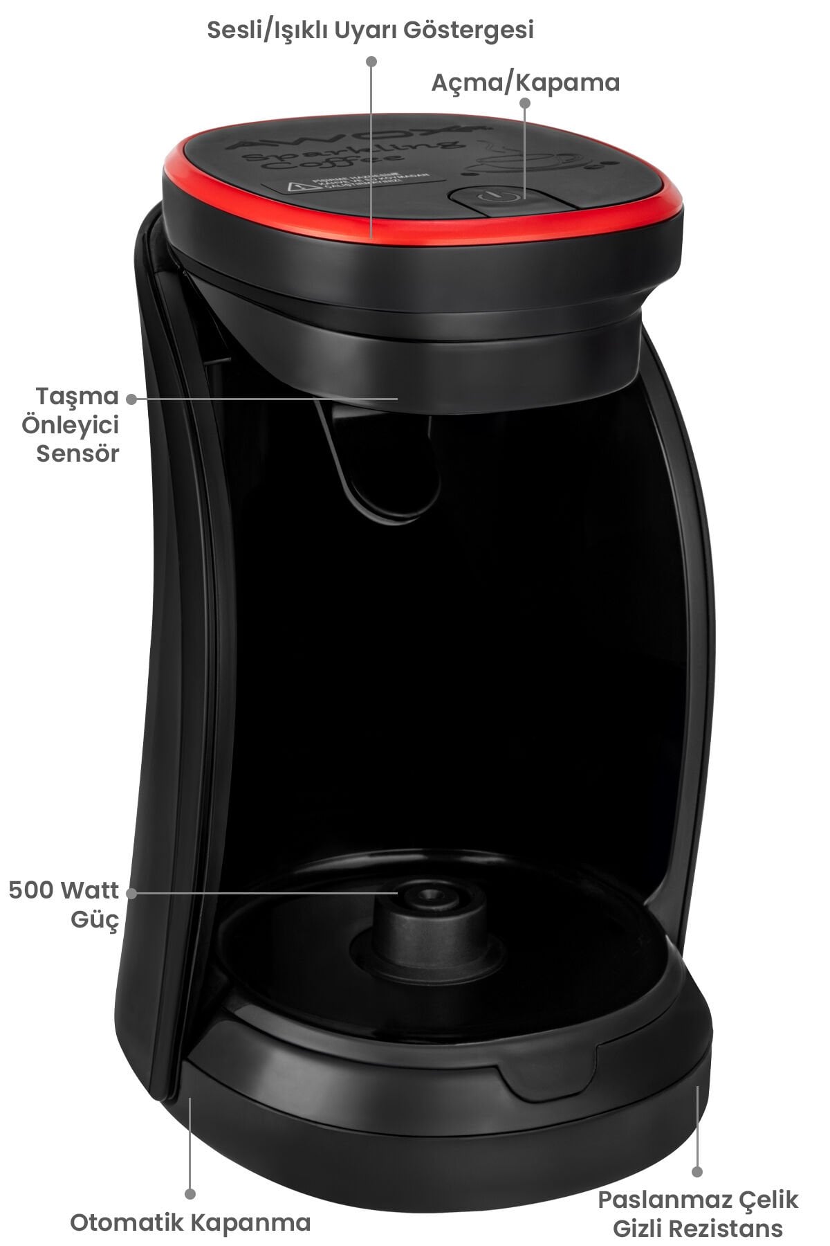Otomatik kapanma özelliği sayesinde, kahvenizin demlenmesini beklerken ekstra güvenlik sağlar ve enerji tasarrufu yapmanıza yardımcı olur; 4 fincan kapasitesi ile aynı anda birden fazla kişiye Türk kahvesi servisi yapma imkanı sunar; Sesli ikaz sistemi, kahvenizin hazır olduğunu anında bildirerek zaman kazandırır ve pratik bir kullanım sağlar; Dayanıklı plastik materyali ile hafif ve kolay temizlenebilir bir yapıya sahiptir, mutfakta yer kaplamaz; 2 yıl garanti süresi ile satın alma sonrası güvenilir bir kullanım deneyimi sunar; Damlama emniyeti özelliği, kahve haznesinin taşmasını önleyerek temiz ve düzenli bir kullanım sağlar; Taşma emniyeti ile aşırı dolma durumunda kahve haznesinin taşmasını önler, böylece kahvenizin her zaman taze ve lezzetli kalır;