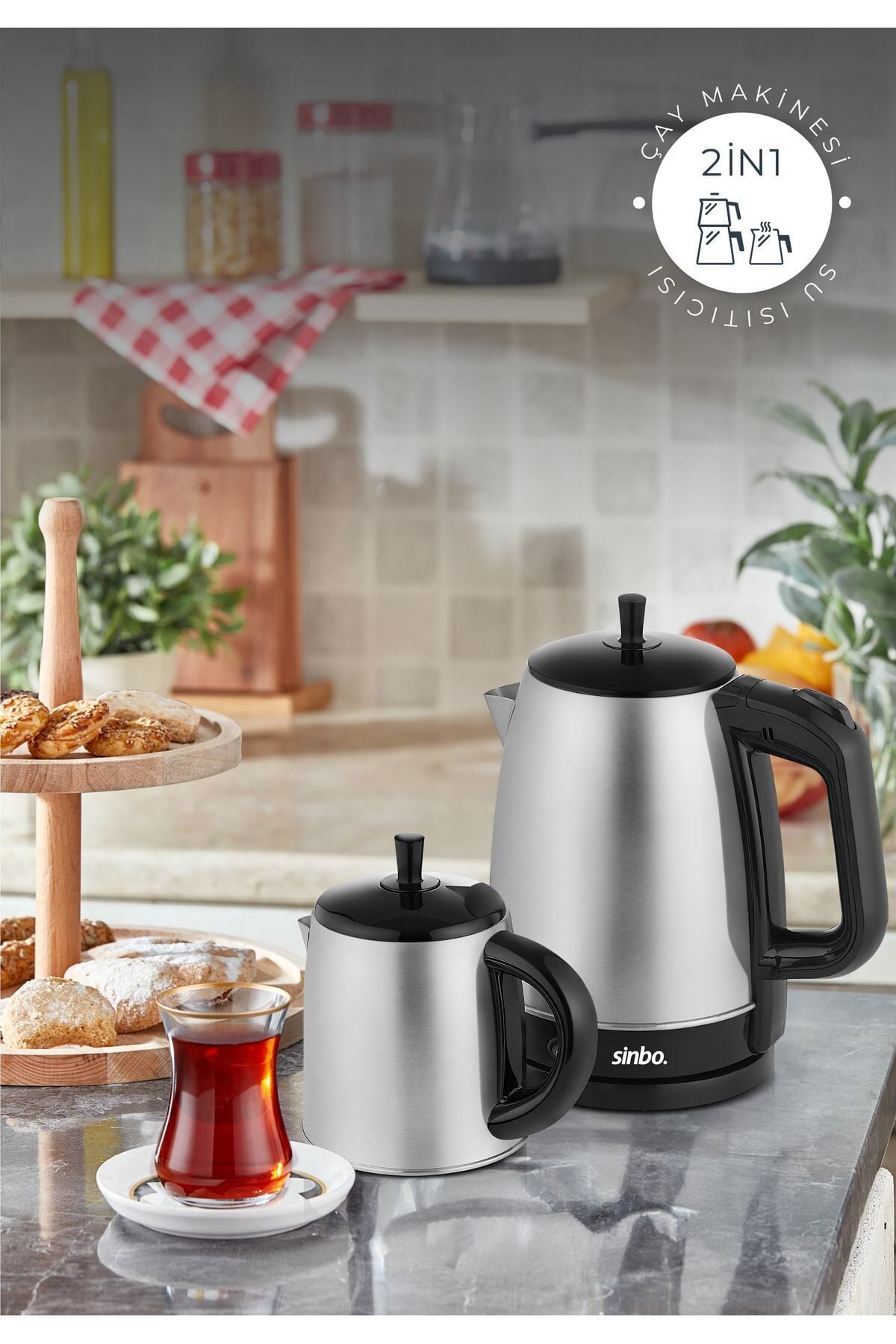 •Dual ısıtma sistemi ile %90 enerji tasarrufu •1; 7 L paslanmaz çelik su ısıtıcısı, 0; 7 L paslanmaz çelik demlik•Özel kapak tasarımı sayesinde su ısıtıcısı olarak kullanabilme imkanı •Otomatik kapanma ve sıcak tutma özelliği •Aşırı ısınma ve susuz çalışmayı önleyen emniyet sistemi•Paslanmaz çelik gizli rezistans •Çıkarılabilir ve yıkanabilir çay süzgeci •360° dönebilme özelliği •Kablosuz kullanım •Kablo saklama yuvası •Gösterge ışıklı açma/kapama anahtarı;