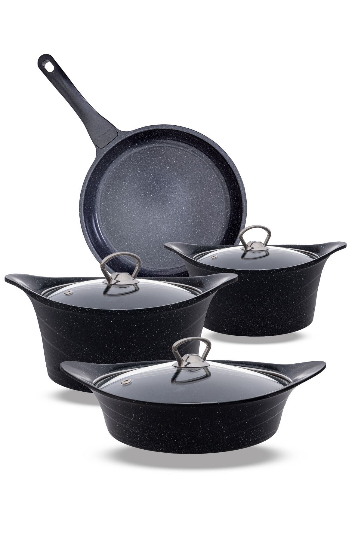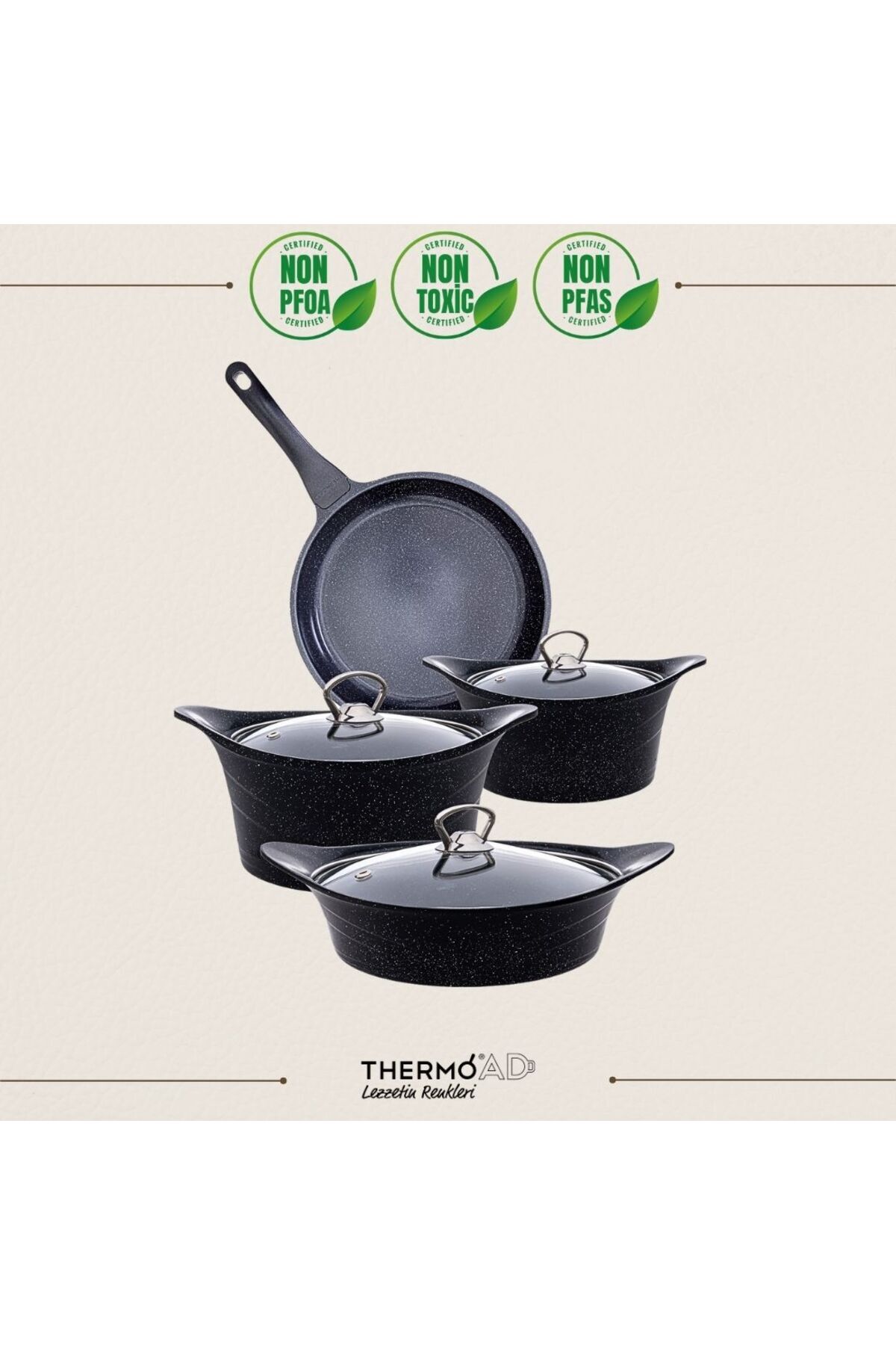 Granit iç ve dış yüzeyi sayesinde uzun ömürlü kullanım ve kolay temizlik sunar; 7 parça set, mutfakta ihtiyacınız olan çeşitli yemek pişirme ihtiyaçlarını karşılar; Yapışmaz taban özelliği ile pişirme sırasında yiyeceklerin tencereye yapışmasını önler, temizliği kolaylaştırır; Granit malzemesi sayesinde ısıyı eşit bir şekilde dağıtarak mükemmel pişirme sonuçları elde etmenizi sağlar;
