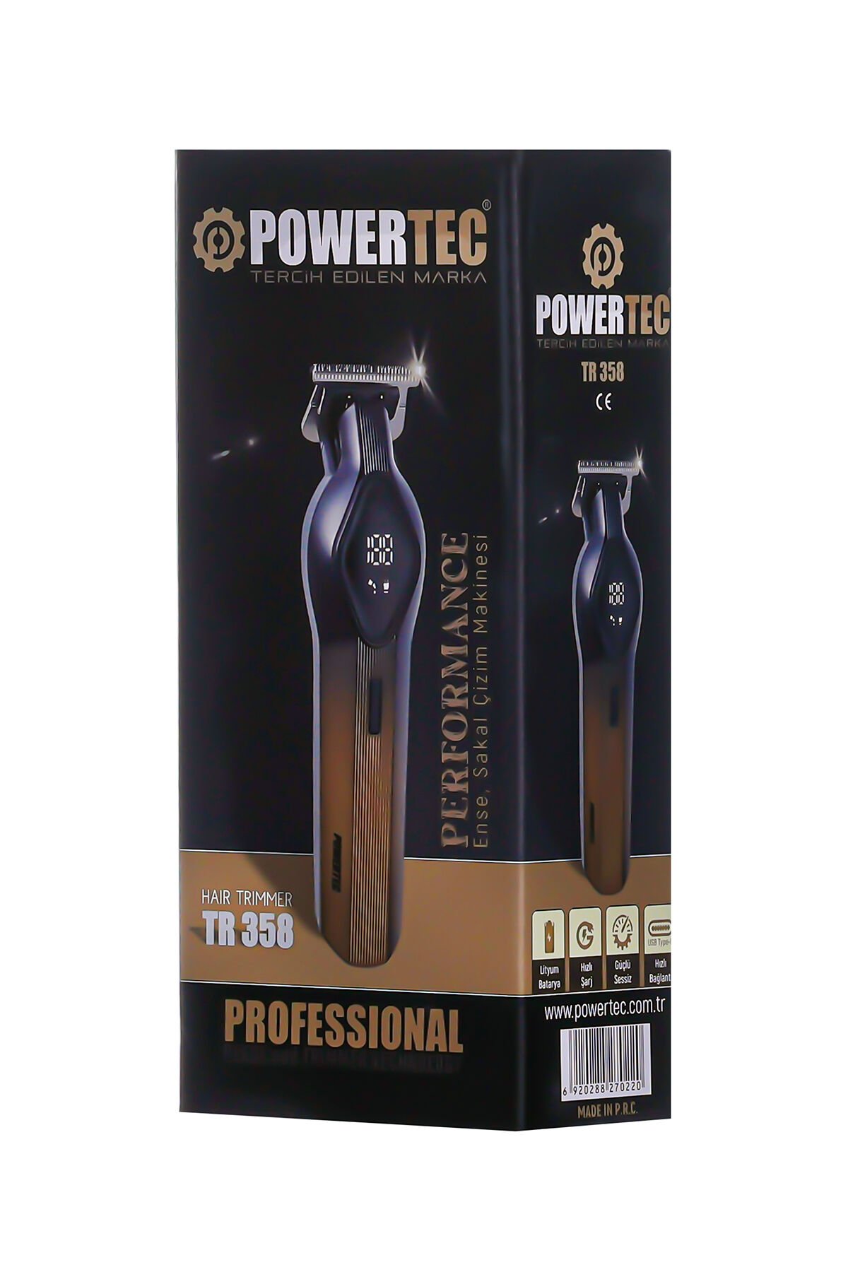 • Marka: Powertec;• Model:TR-358;• Kullanım Alanları: Sakal,Ense,Vücut;• Kullanım Şekli: Kablosuz;• Stand ( Oturaklı ): Yok;• Standlı Standsız Şarj: -;• Şarj Tipi: Micro USB ( Adaptör Yok );• Başlık Tipi: T Bıçak ( Metal );• Çıkarılabilir Bıçak: Hayır;• Tarak Ölçüleri: - 1mm 3mm 5mm 7mm;• Tarak Sayısı: 4;• Taraksız En Kısa Kesim: 0,1mm;• Taraksız Uzunluk Ayarlama: -;• Motor Gücü: 3.7 v/DC;• Motor Çalışma Tipi: Tek Kademe;• Yedek Pil: -;• Pil Özellikleri: 1200 mAh Lityum;• Batarya Tipi: Gömmeli;• Şarj Bildirim Led: Var ( Dolunca Yeşil );• Yedek Başlık: -;• Çalışma Süresi: 2 Saat;• Şarj Süresi: 3-4 Saat