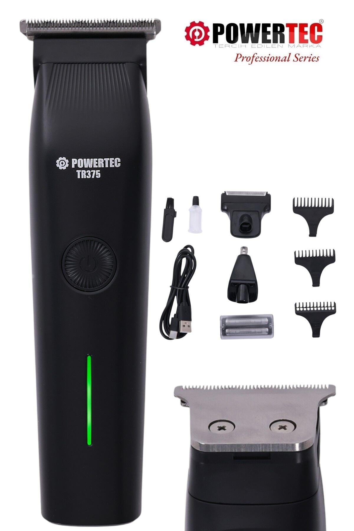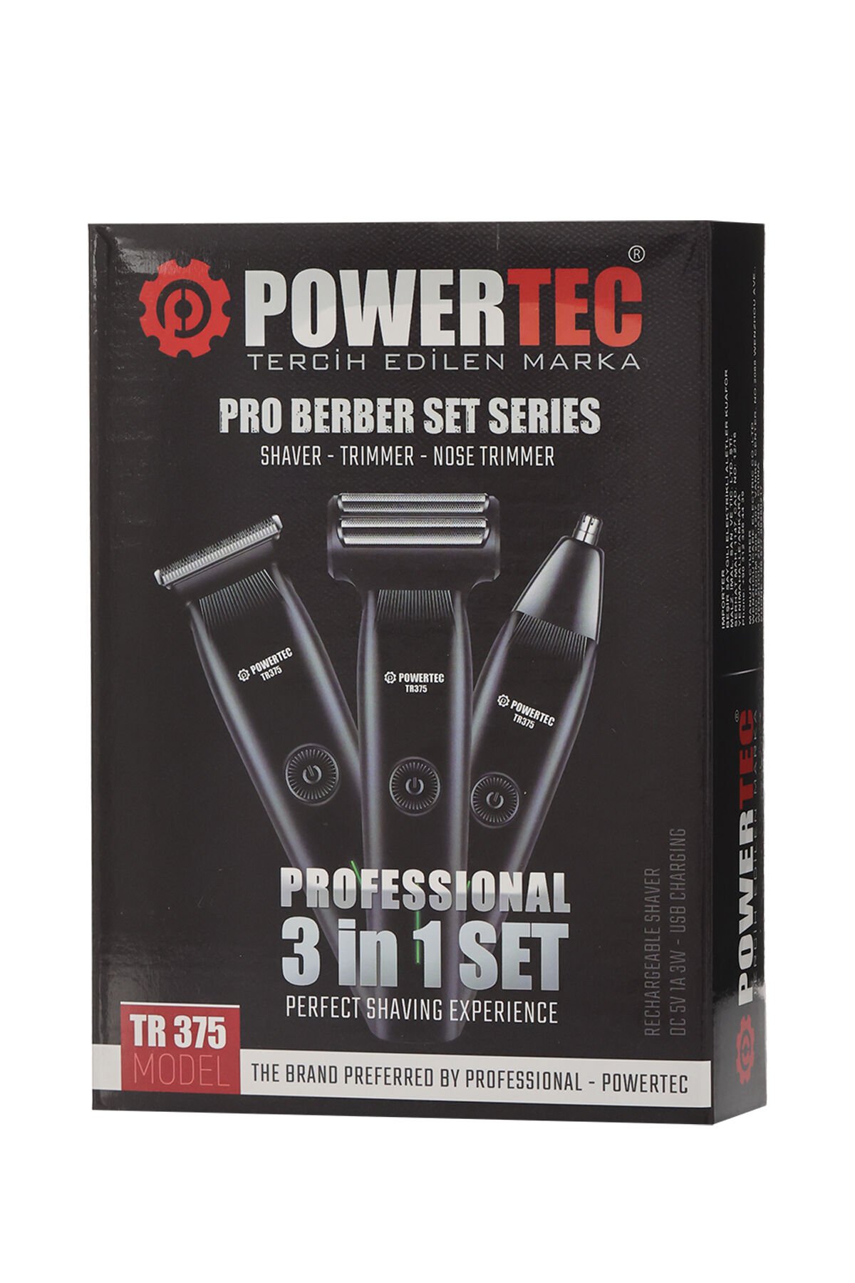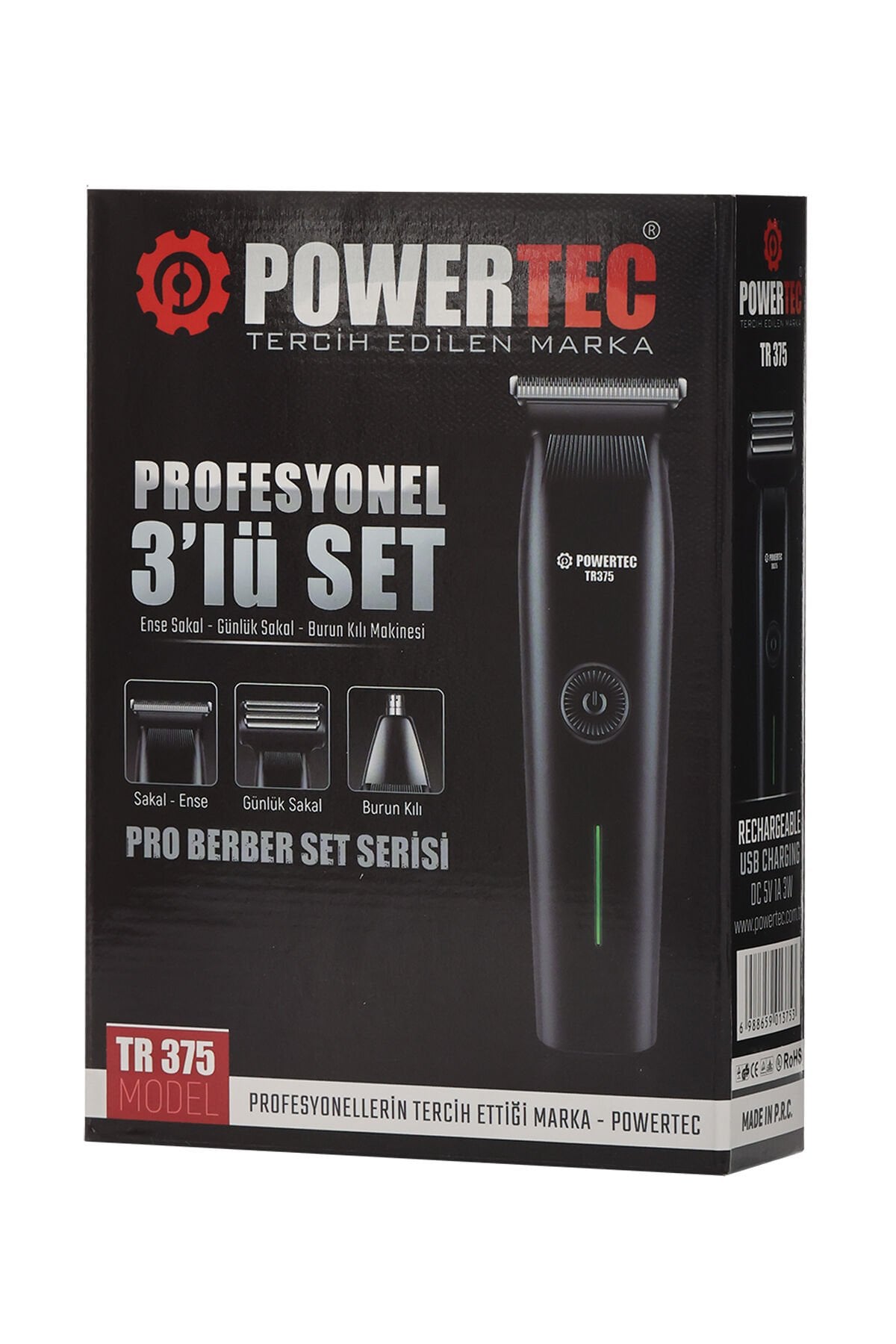 Marka: Powertec ;Model:TR-375;• Kullanım Alanları: Günlük Sakal Tıraşı, Burun Kılı, Sakal Tıraşı ;• Kullanım Şekli: Kablosuz ;• Stand ( Oturaklı ): -;• Standlı Standsız Şarj: -;• Şarj Tipi: USB Type C (Adaptör yok) ;• Başlık Tipi: Elekli-Metal;• Çıkarılabilir Bıçak: Evet;• Tarak Ölçüleri: 1-3-5mm;• Tarak Sayısı: 3 ;• Taraksız En Kısa Kesim: 0,1 mm ;• Taraksız Uzunluk Ayarlama: - ;• Motor Gücü: 3.7 v/DC ;• Motor Çalışma Tipi: Tek Kademe Çalışma Hızı ;• Yedek Pil: Yok ;• Pil Özellikleri: 600 mAh lityum ;• Batarya Tipi: Gömülü batarya ;• Şarj Bildirim Led: Var (Dolunca Yeşil) ;• Yedek Başlık: - Elekli Başlık ;• Çalışma Süresi: 2 saat ;• Şarj Süresi: 2-3 Saat ;Yedek Başlık Hediyeli