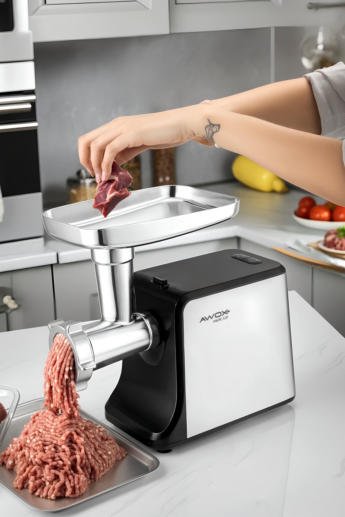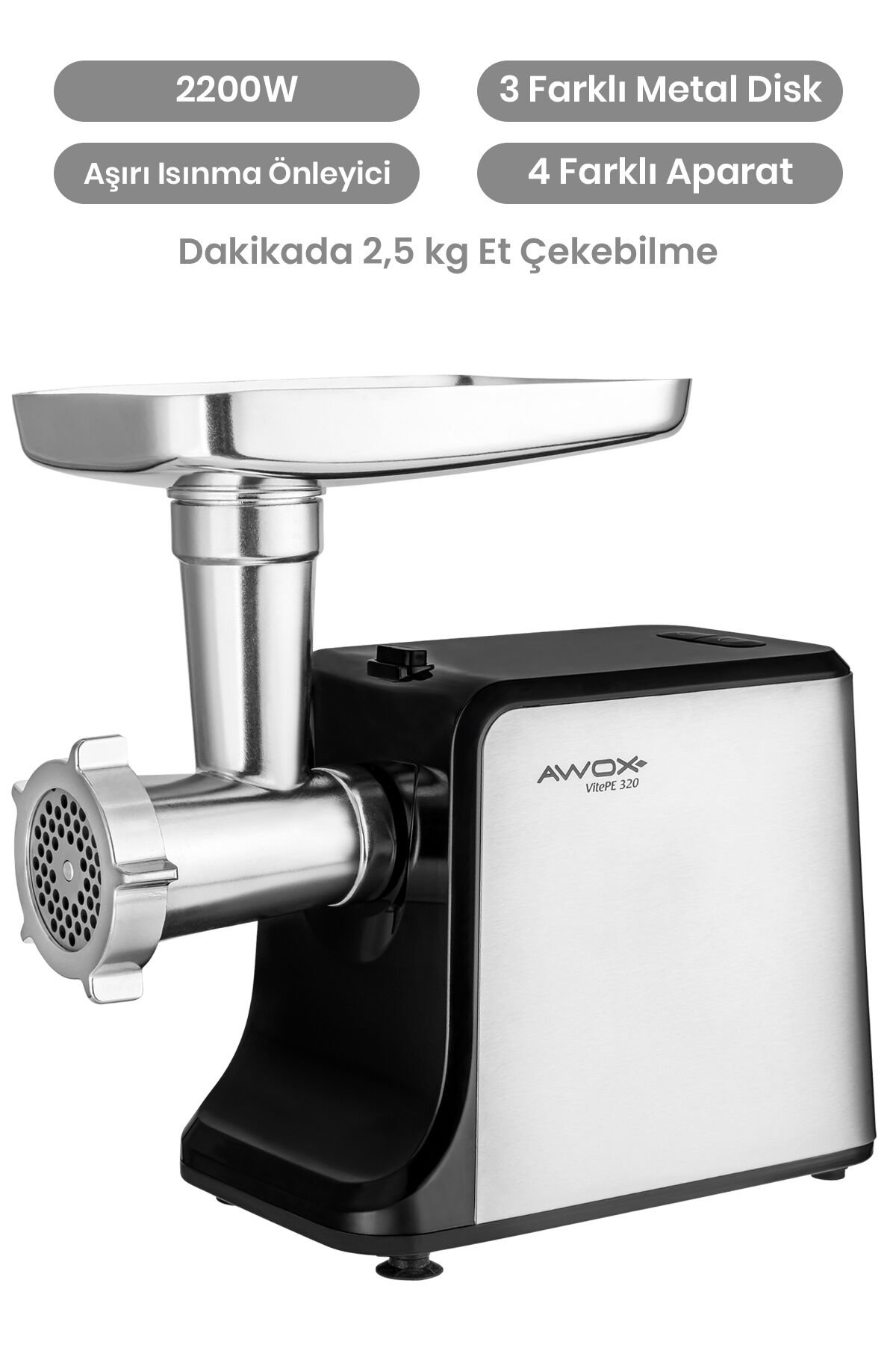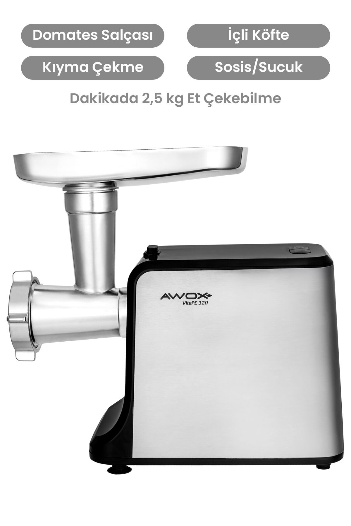 Sosis ve sucuk yapımında kolaylık sağlayan Vite PE320 kıyma makinesi, evde profesyonel sonuçlar elde etmenizi sağlar.; Awox garantisi ile güvenli alışverişin keyfini çıkarın.; Dayanıklı yapısı ve pratik kullanımıyla Vite PE320 kıyma makinesi, mutfak işlerinizi daha hızlı ve daha kolay hale getirir.; - 220 - 240 V voltaj aralığında çalışarak güvenli bir kullanım imkanı sağlar.; - 350 Watt - 50 Hz / 60 Hz frekans seçenekleriyle farklı bölgelere uygunluk gösterir.; - 2 yıl garantisi ile satın alma sonrası da güven verir.; - Sosis ve sucuk yapımını kolaylaştıran aparatları bulunur, böylece evde lezzetli atıştırmalıklar hazırlayabilirsiniz.; - Şık inox rengiyle mutfağınıza modern bir dokunuş ekler.; - 11 - 13 L kapasitesi sayesinde büyük miktarlarda kıyma işlemini rahatlıkla gerçekleştirebilirsiniz.; - Gıda temasına uygun yapıya sahip olması, gıdalarla güvenli bir şekilde çalışabilmesini garanti eder.; - ELEKTROTURK ELEKTRONİK PAZARLAMA ANONİM ŞİRKETİ tarafından üretilmiş olup, Mehmet Akif Mahallesi'ndeki üretim tesisinden gelir.; - Tamir edilebilirlik özelliği ile kullanıcılar, herhangi bir sorun karşısında profesyonel destek alabilirler.; - Et kıyma diski sayesinde çeşitli et parçalarını kolayca işleyebilirsiniz.; - Awox Garantili olarak satışa sunulan bu ürün, kalite standartlarına bağlıdır.; - Kablo boyu - 956mm - Dış koli ölçüsü: 300X520X420